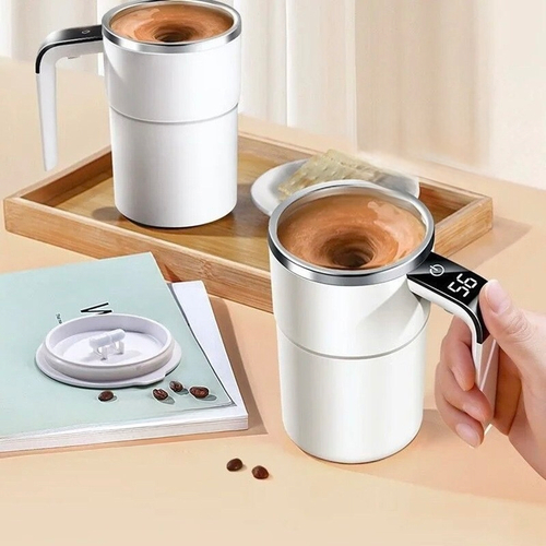Surprinde-ți simțurile cu această cană inteligentă cu amestecare magnetică și afișaj digital dublu: al temperaturii și al temporizării rotației! Perfectă pentru cafea, ceai, lapte sau ciocolată caldă, cana îți oferă un mix uniform fără linguriță, datorită tehnologiei inovatoare de amestecare cu magnet.
