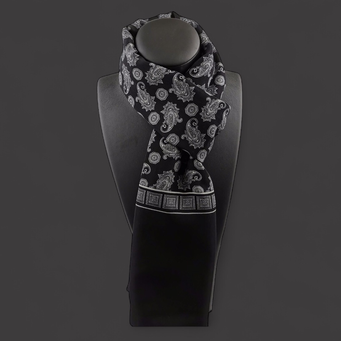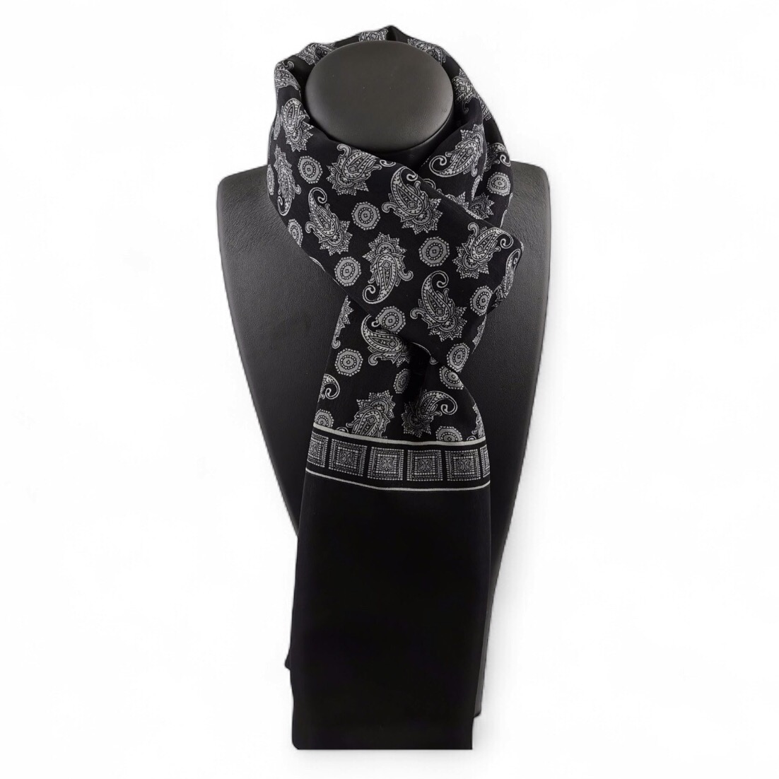Esarfa eleganta pentru barbati,cu design special, in contrast de culori pe fundal negru.