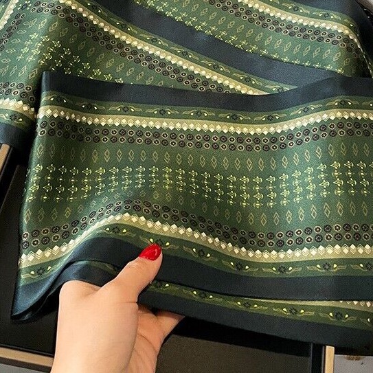 Eșarfă elegantă din mătase naturală,verde smarald cu imprimeu geometric – accesoriul perfect pentru un look rafinat!