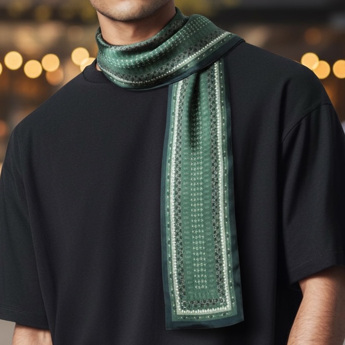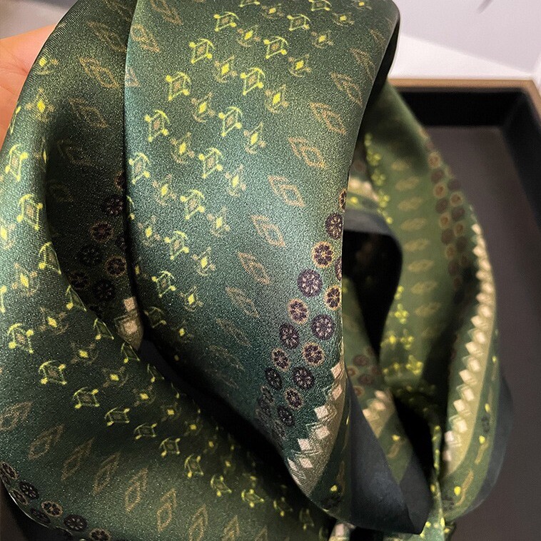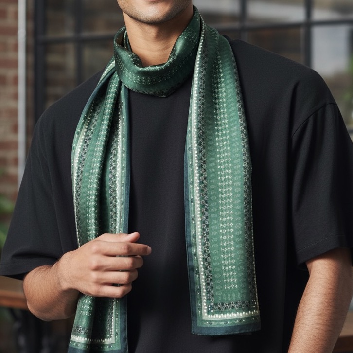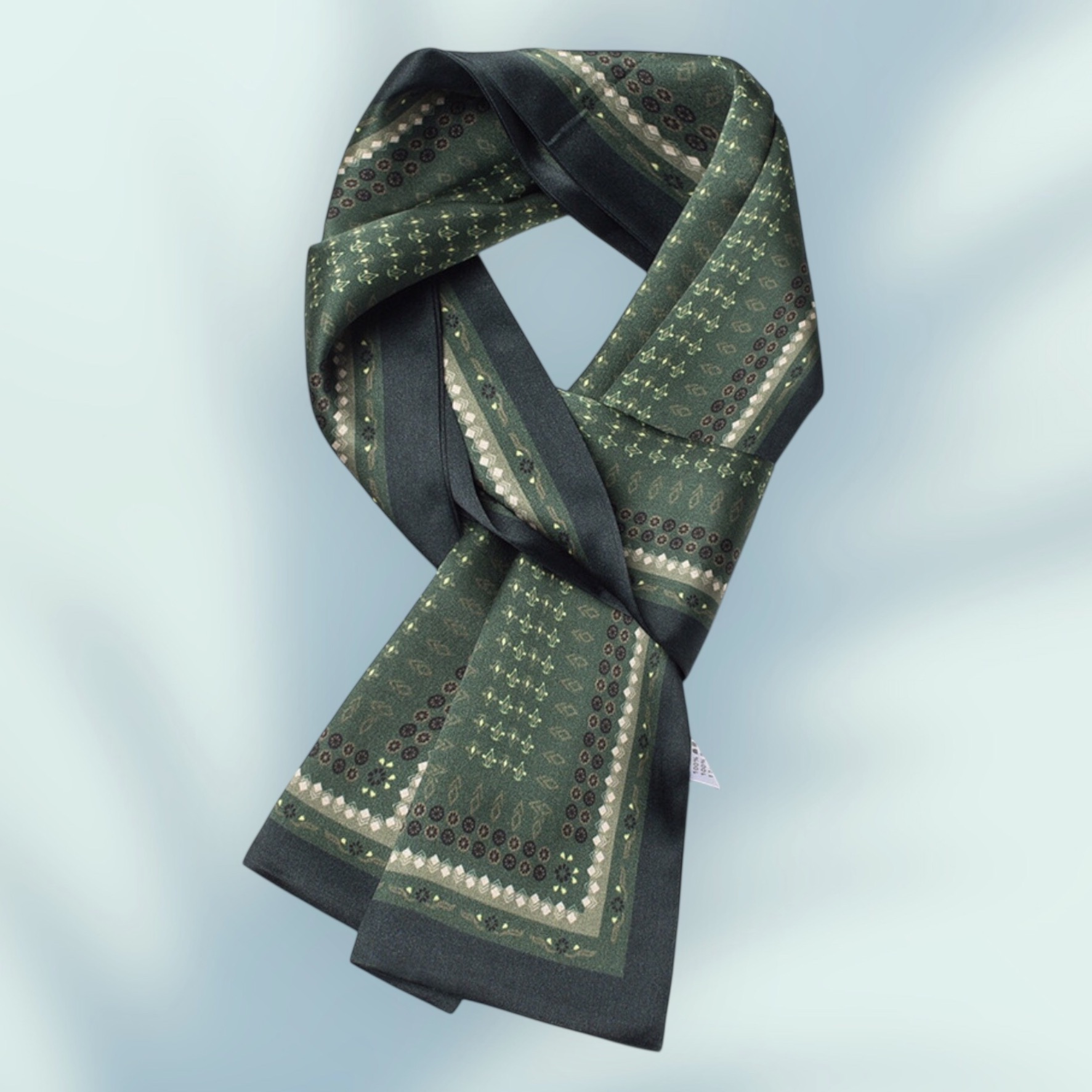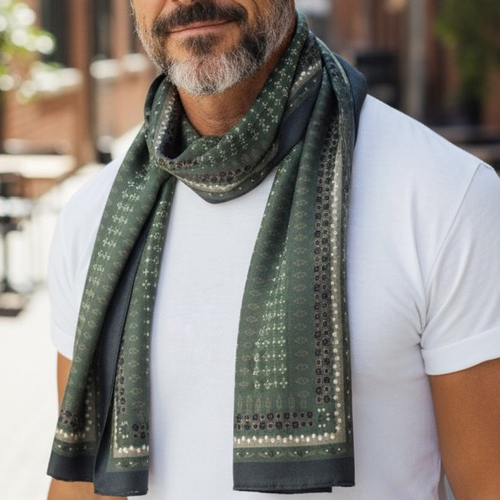 Oferă cadoul perfect: o eșarfă din mătase verde smarald cu imprimeu elegant,perfectă pentru bărbați!