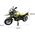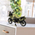 Motocicleta are roti care se rotesc si suport flexibil de sprijin pentru stationare.