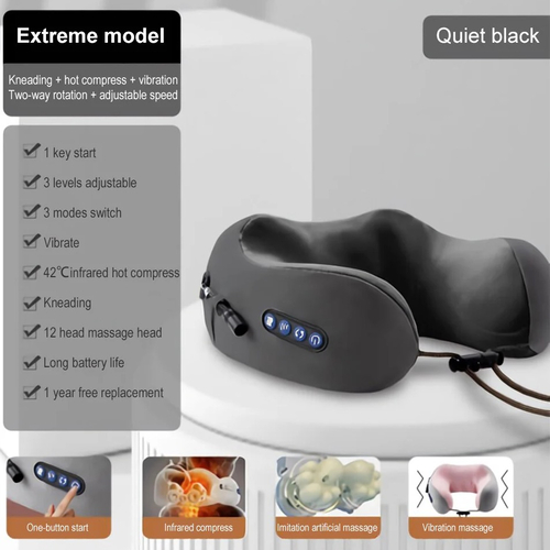 Pernă de călătorii cu funcții de masaj cervical,reîncărcabilă – Relaxare premium pentru gât și umeri