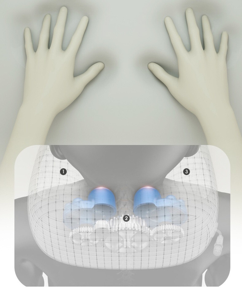 - Control: Panou lateral cu butoane tactile (Pornit/Oprit, Moduri masaj, Intensitate)