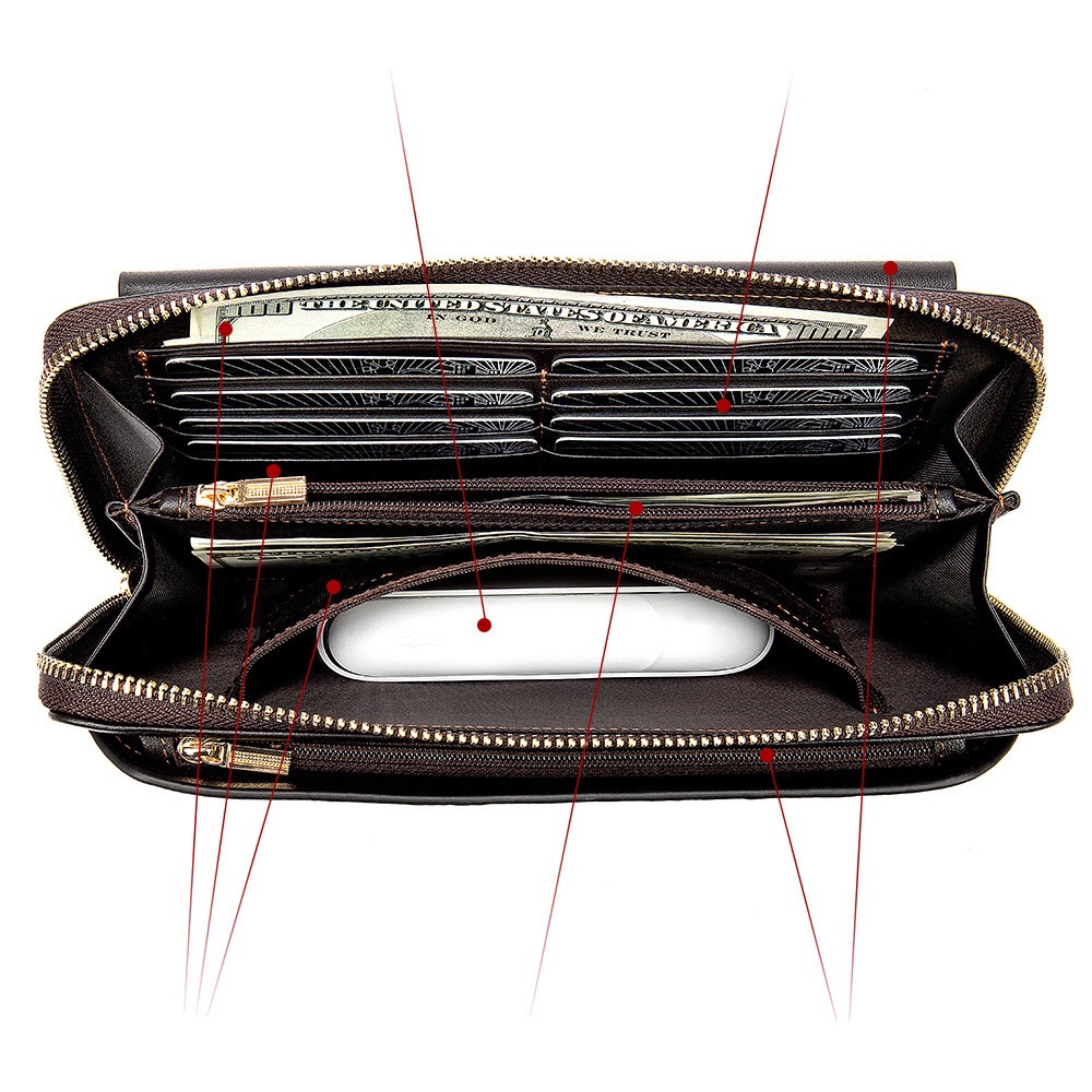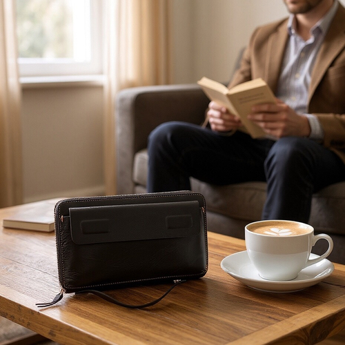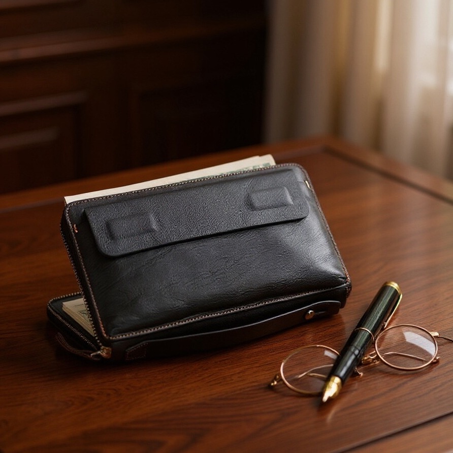 - Compartimentare inteligentă – suficient spațiu pentru bancnote, carduri, acte și chiar telefon mobil
