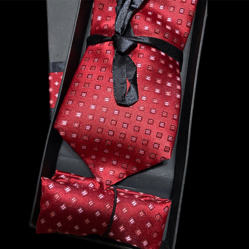 Set cadou ce contine cravata si batista de culoare rosie,cu design special.