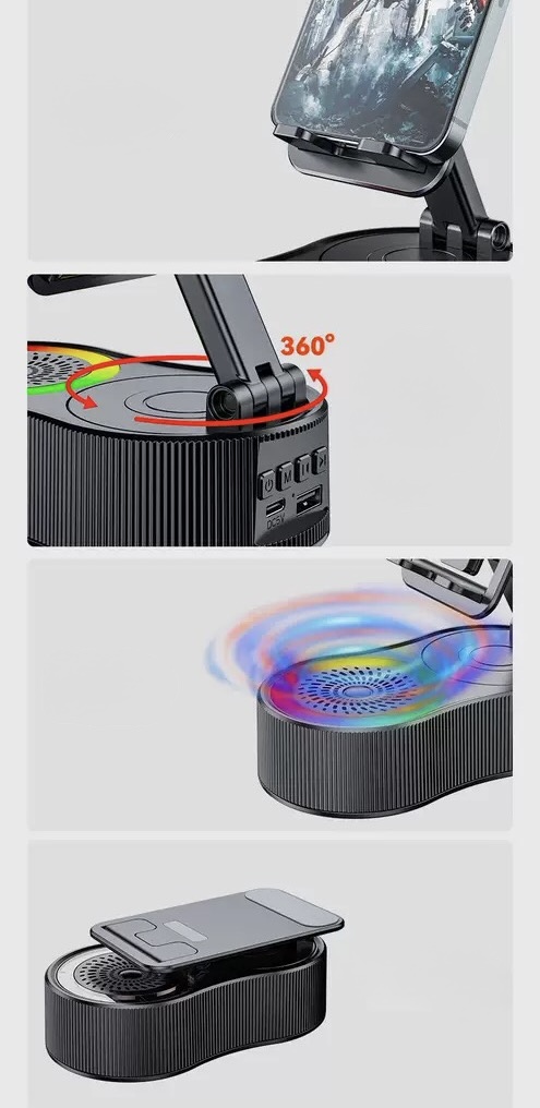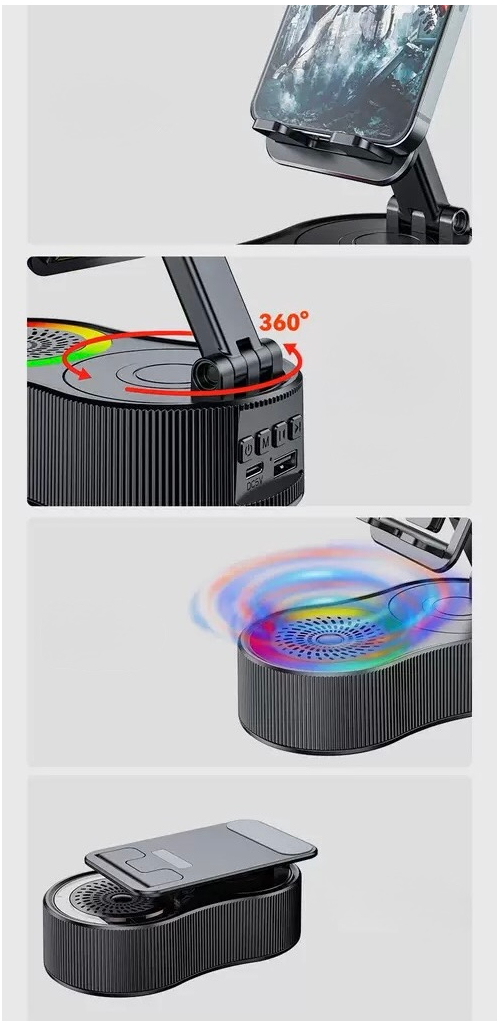 Suport Telefon cu Speaker Wireless, Bluetooth și LED-uri RGB – Gadget multifuncțional modern și util