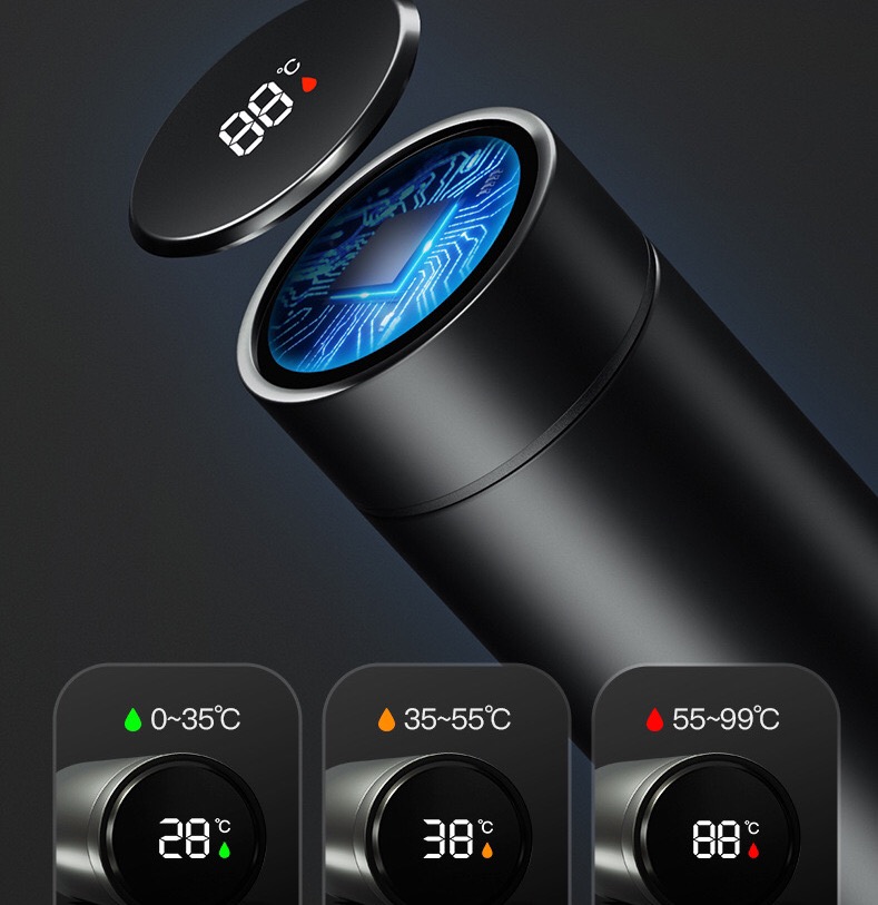 Sticla termoizolanta cu capac prevazut cu display pentru afisarea temperaturii. Termosul Smart iti arata temperatura lichidului din interior si este o alegere perfecta pentru drumetie, camping dar si pentru utilizare zilnica,la birou,in concedii sau vacante.