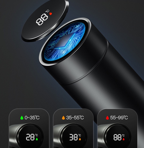 Termos Smart cu perete dublu si display touch cu afisare temperatura lichid.