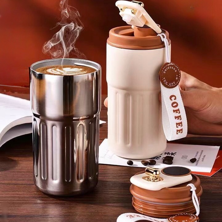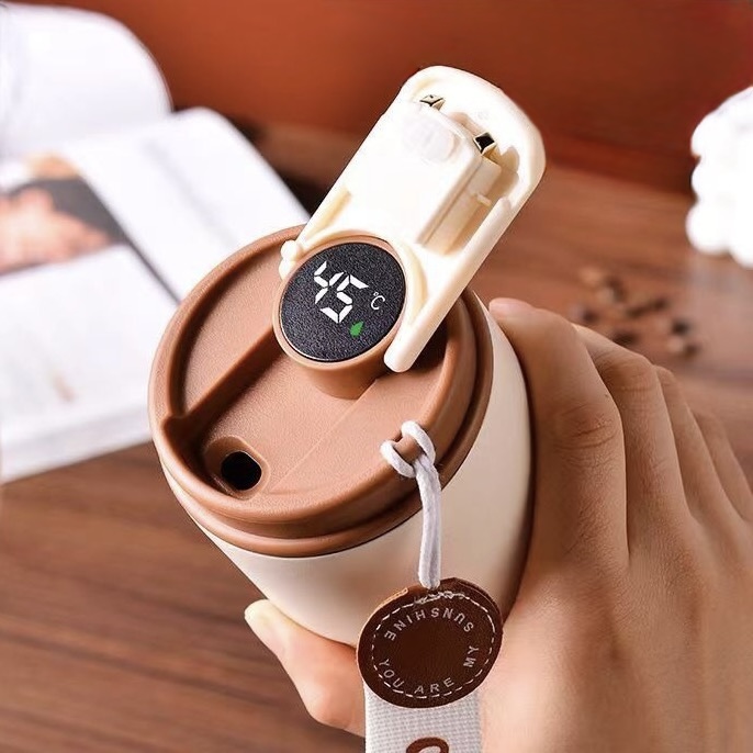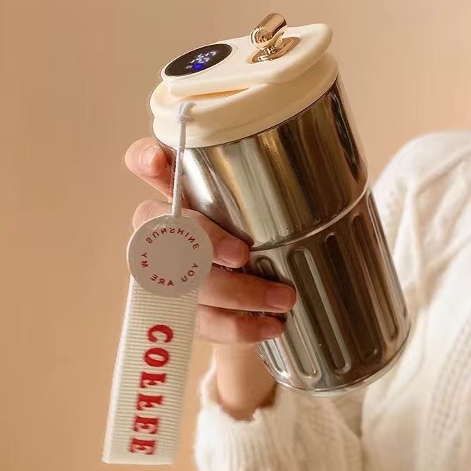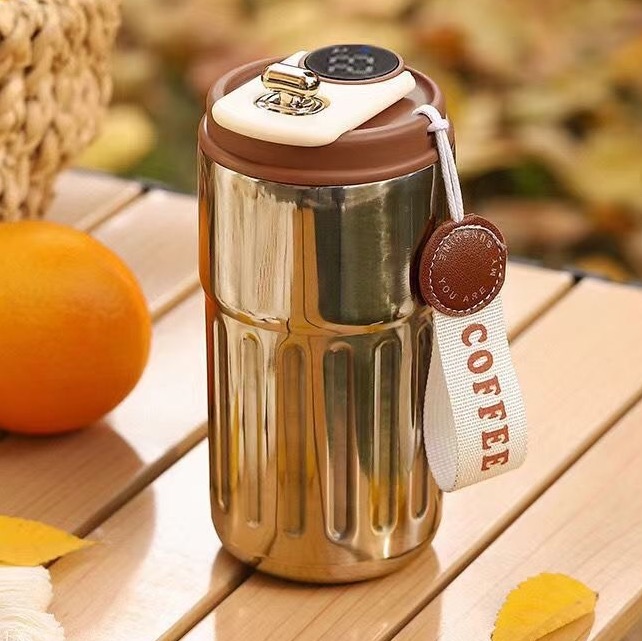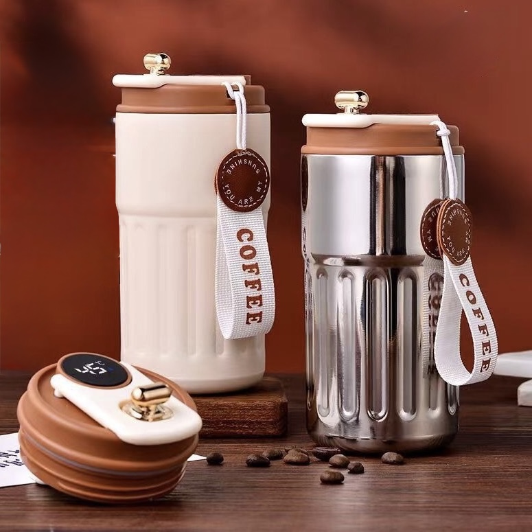 Termos Smart cu design retro,cu perete dublu si display touch cu afisare temperatura lichid.