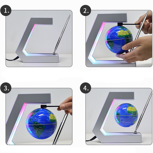 ● Deși ascunse în imagine, toate globurile de levitație au un cablu electric care iese din bază și trebuie conectat la o priză electrică pentru ca funcția de levitație să funcționeze.