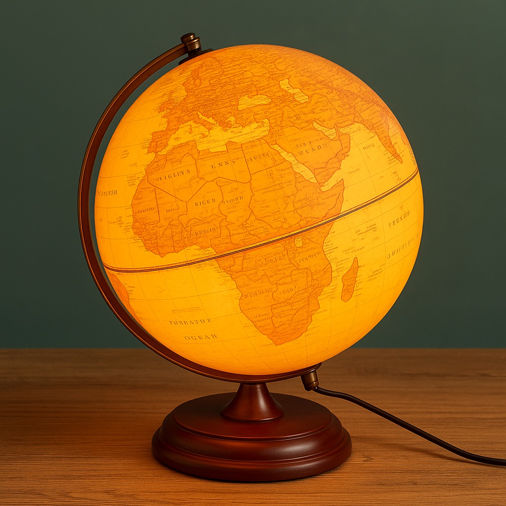 Descopera frumusetea lumii intr-un mod unic cu acest glob pamantesc luminos in stil vintage, ideal pentru a aduce o nota de rafinament in orice incapere. Realizat cu detalii atent finisate si design clasic, acest glob functioneaza atat ca obiect decorativ, cat si ca lampa ambientala ce ofera o lumina calda si placuta,reglabila de la comutator.