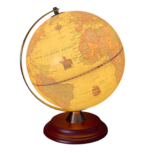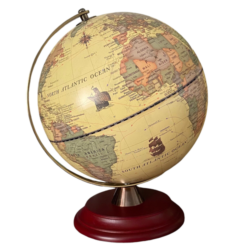 Perfect pentru birou, biblioteca sau living, globul pamantesc devine un punct de atractie in decorul tau si inspira prin eleganta sa atemporala.Acesta ofera lux spatiului cu harta sa antica,baza din lemn si meridianul metalic.Este cadoul ideal pentru pasionatii de calatorii, pentru cei care indragesc geografia sau pentru persoanele care apreciaza accesoriile de lux cu valoare educativa!