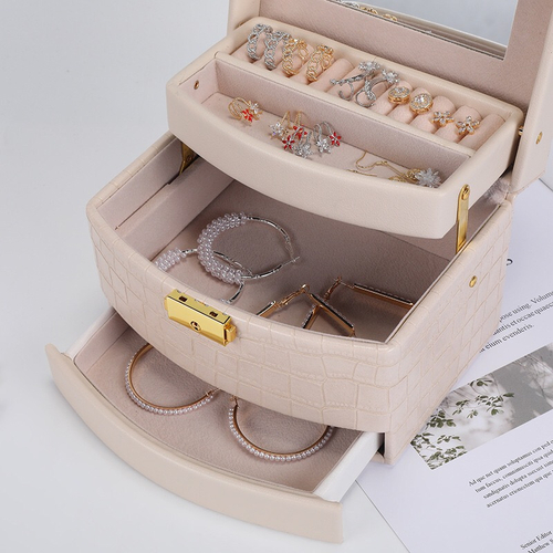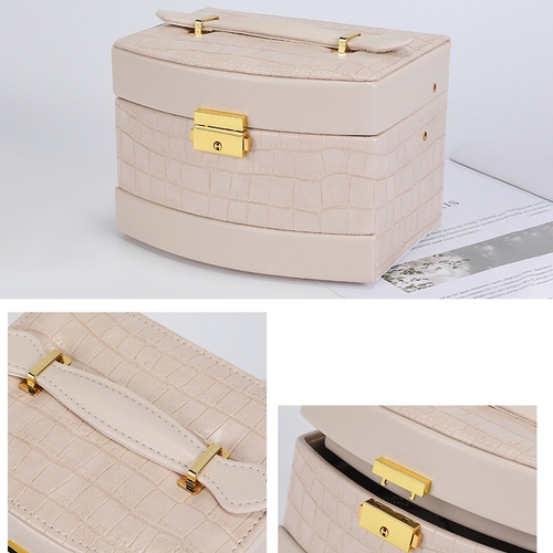 Cutia de bijuterii Elegance are maner si este portabila.
