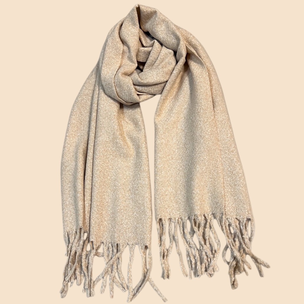 Oferă eleganță și rafinament în sezonul rece cu această eșarfă bej din cașmir de înaltă calitate.