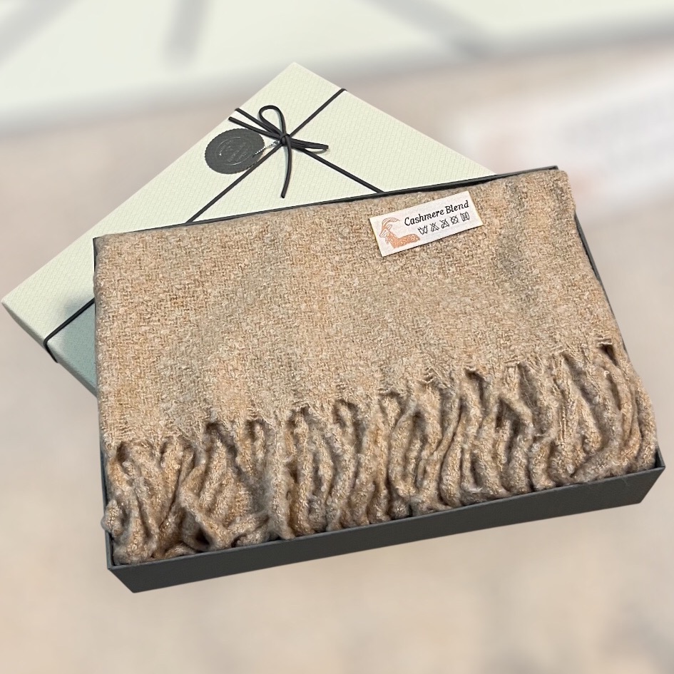 Esarfa Premium Cashmere, Bej, in cutie cadou
