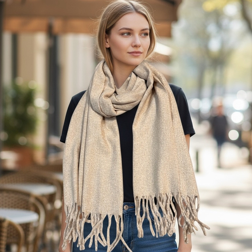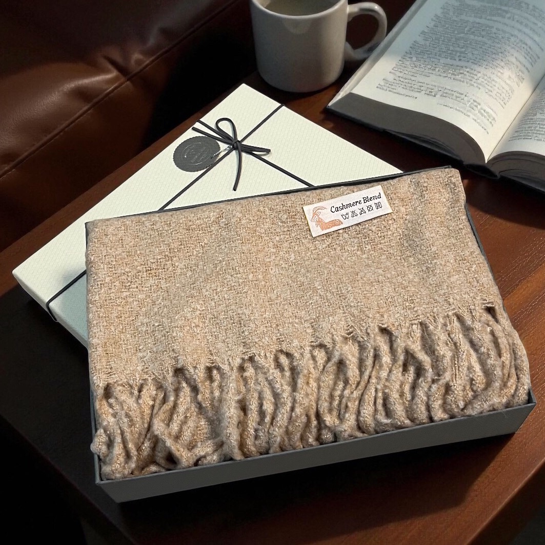 Eșarfă bej din cașmir premium – cadou elegant de iarnă pentru femei și bărbați