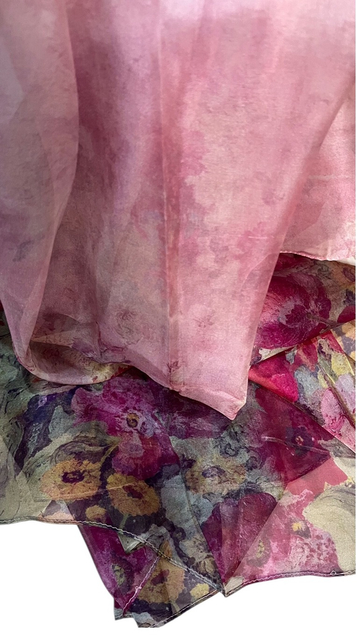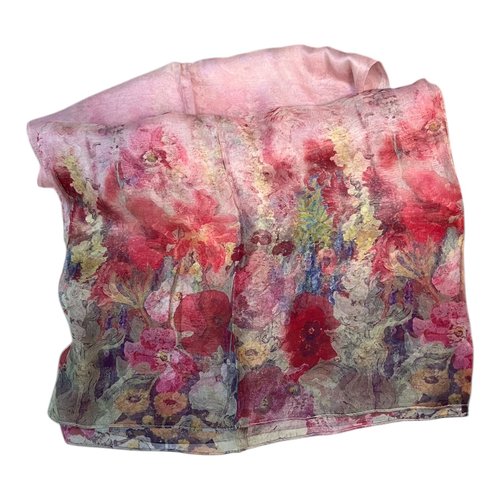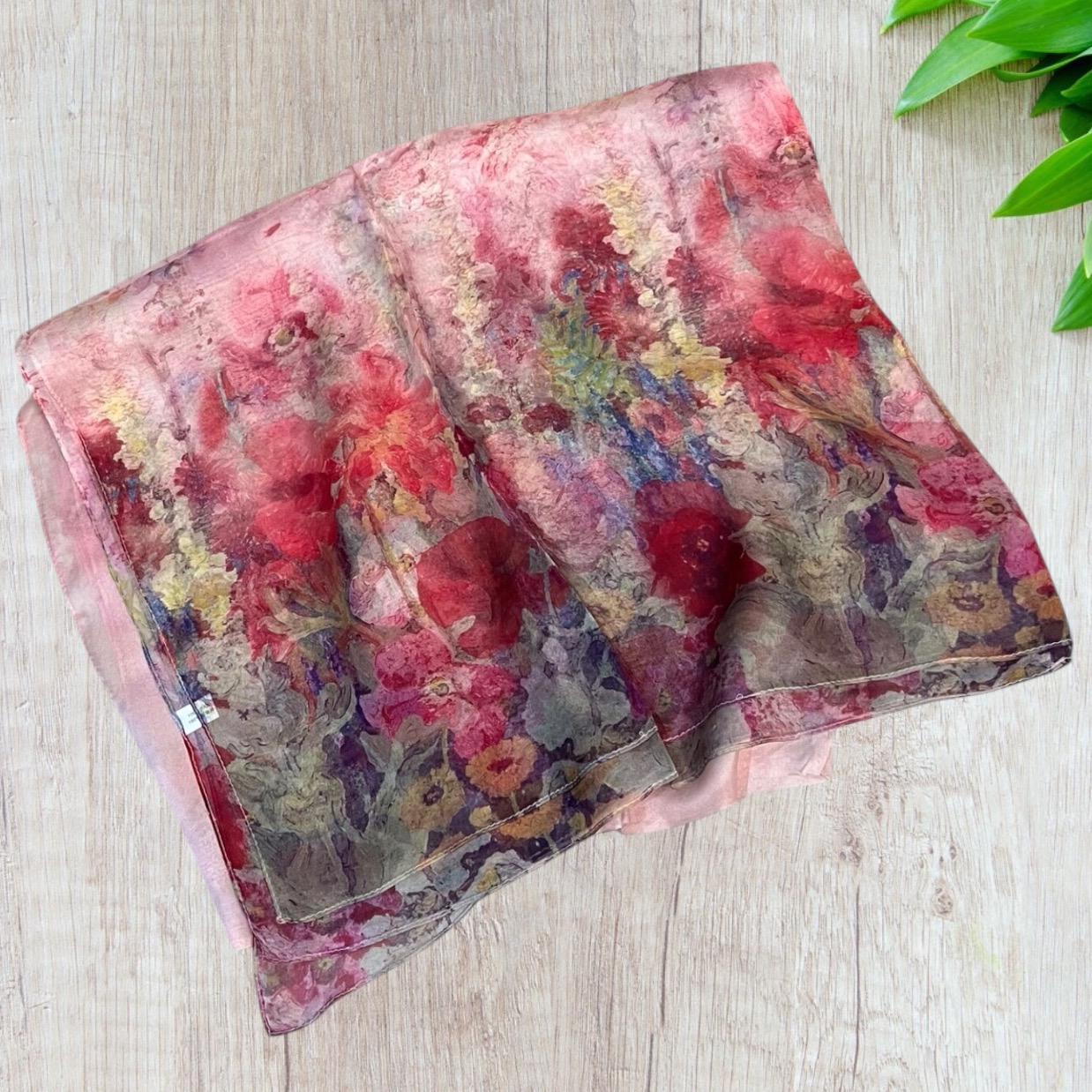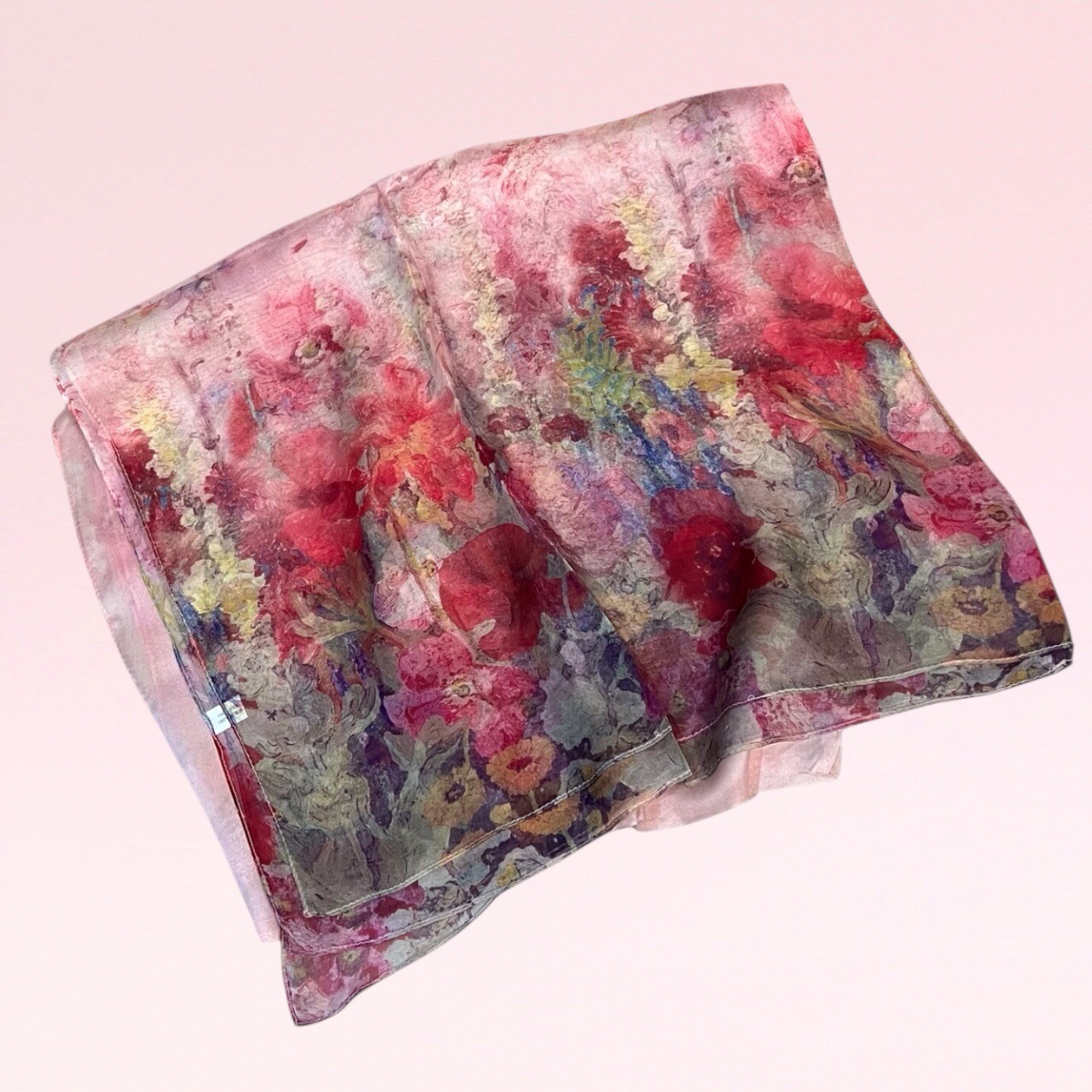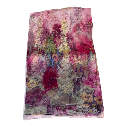 Realizată din mătase ultra fină, ușoară și delicată la atingere, eșarfa impresionează prin tabloul