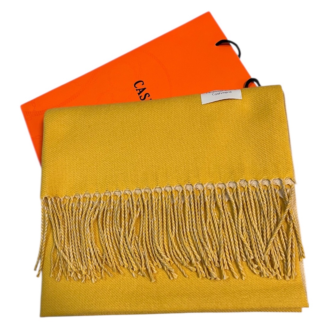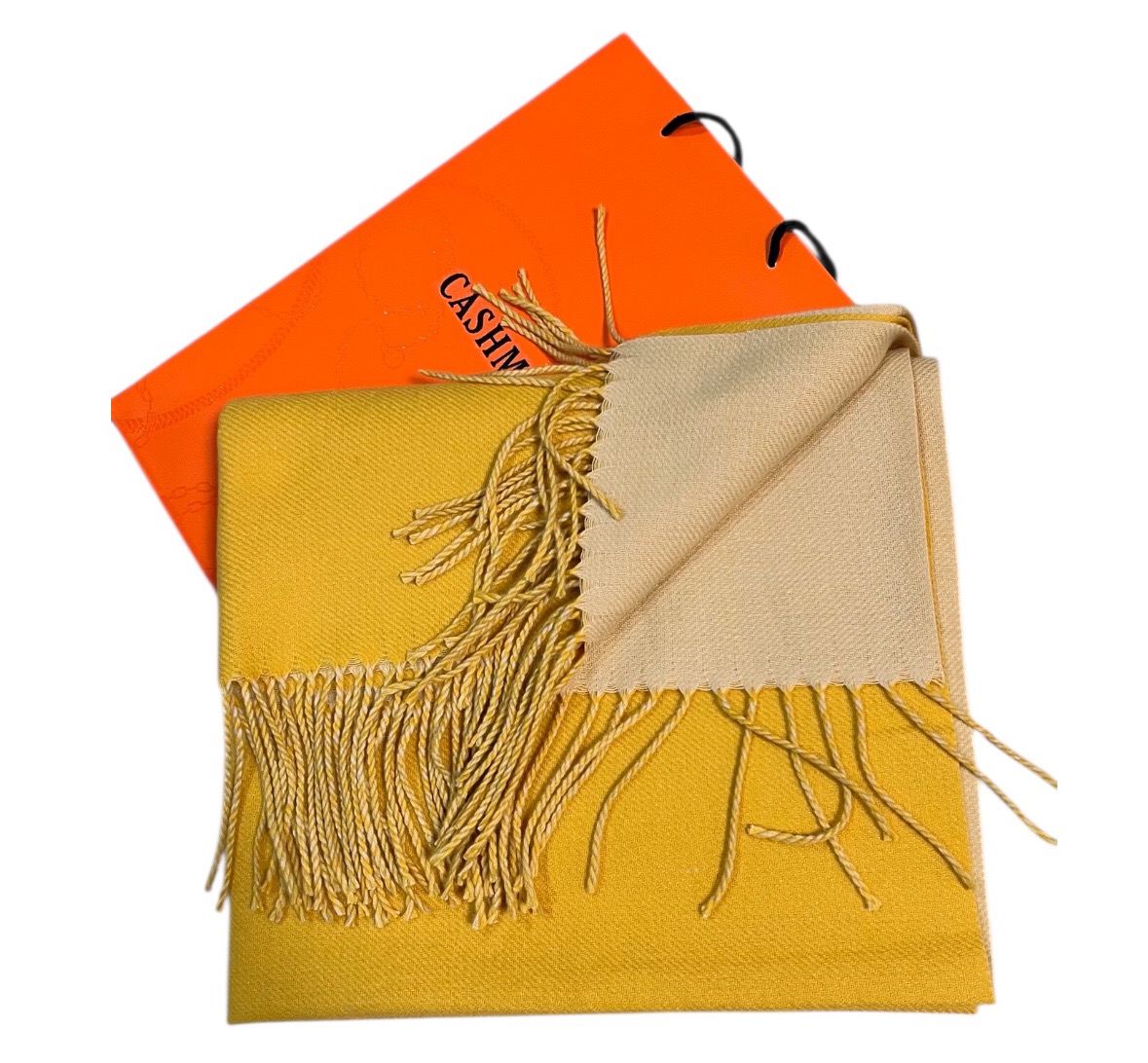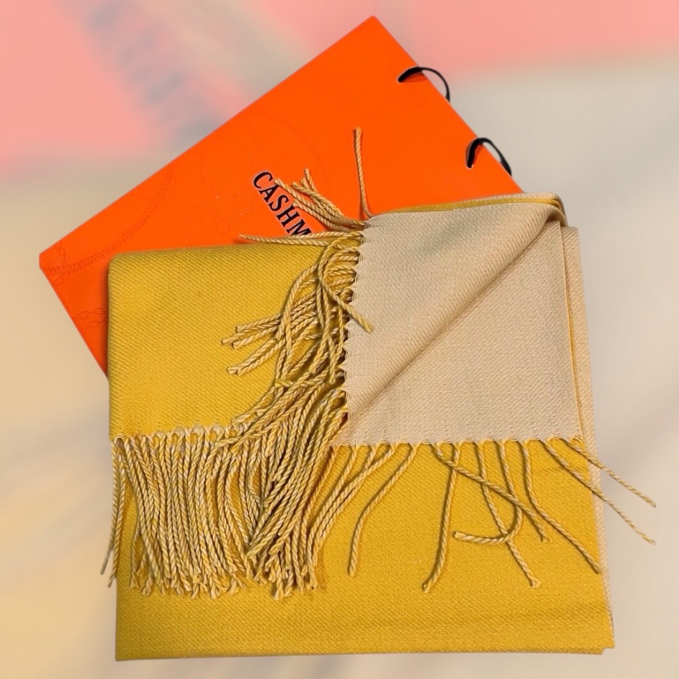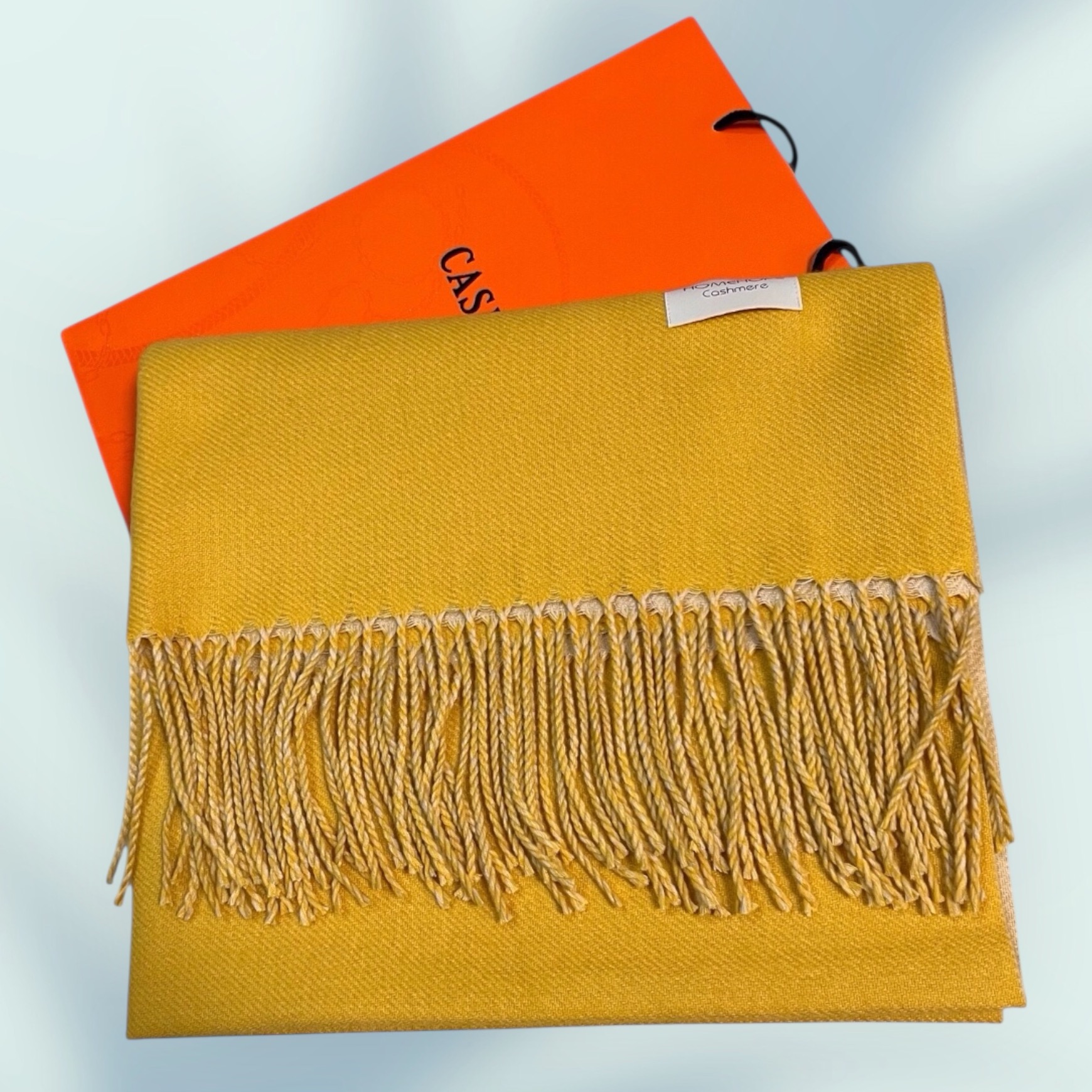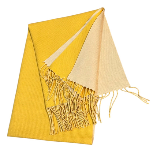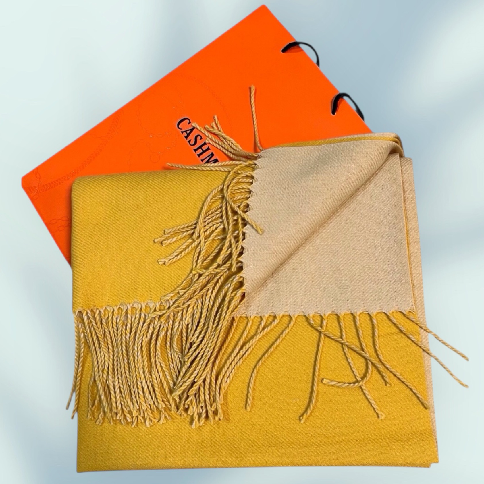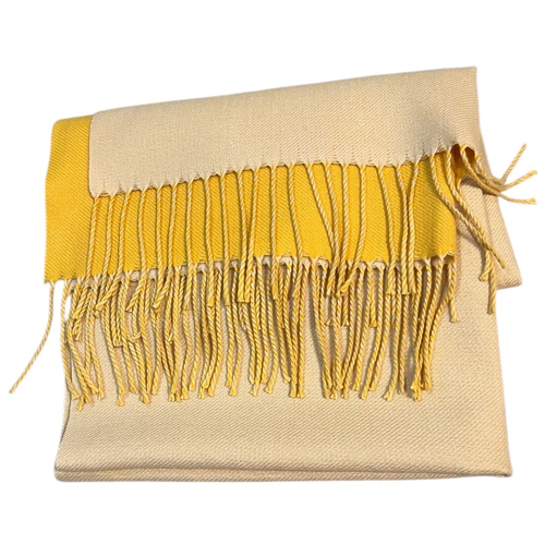 Eșarfă-Fular Dublă din Cașmir, Galben și Bej, cu Franjuri – Cadou Elegant