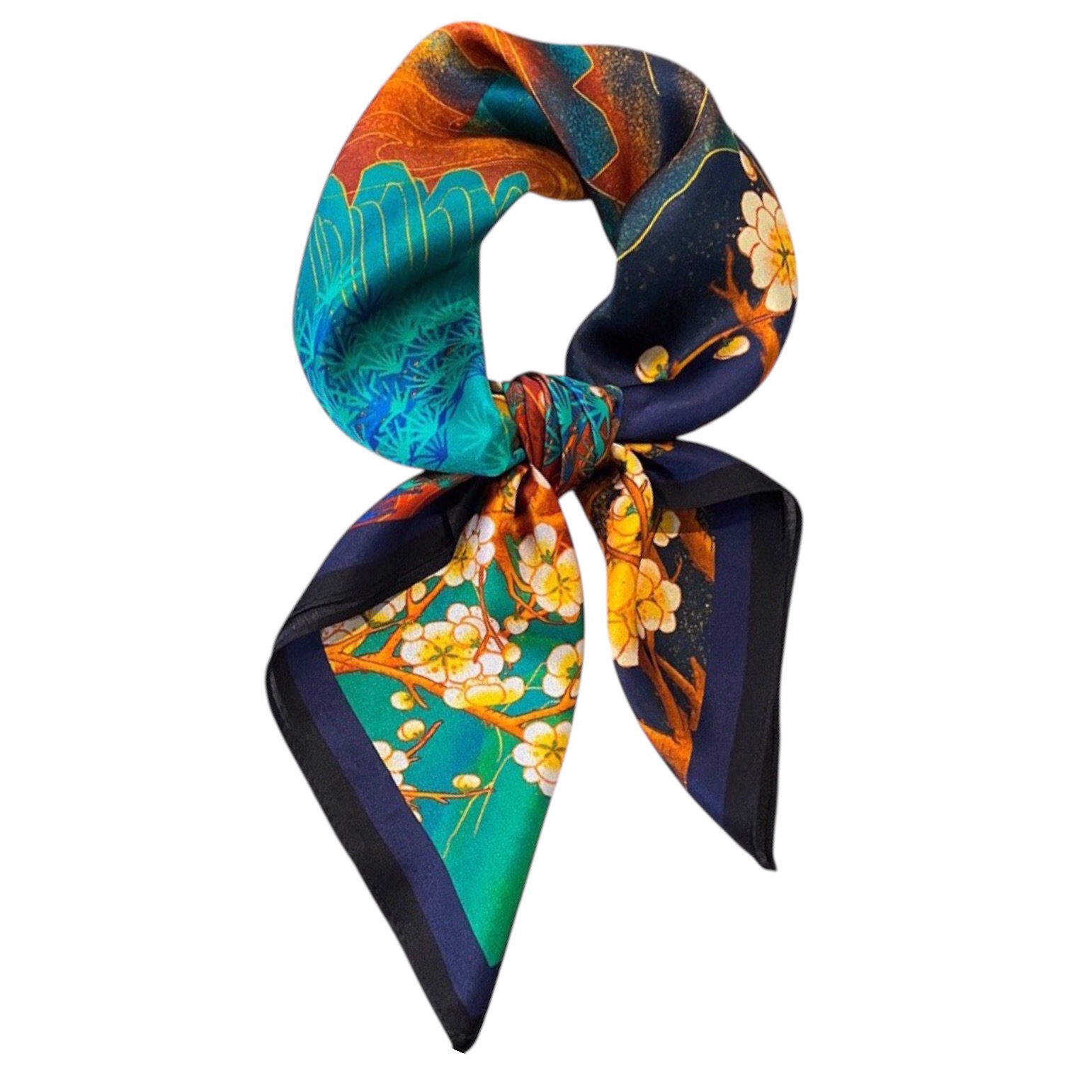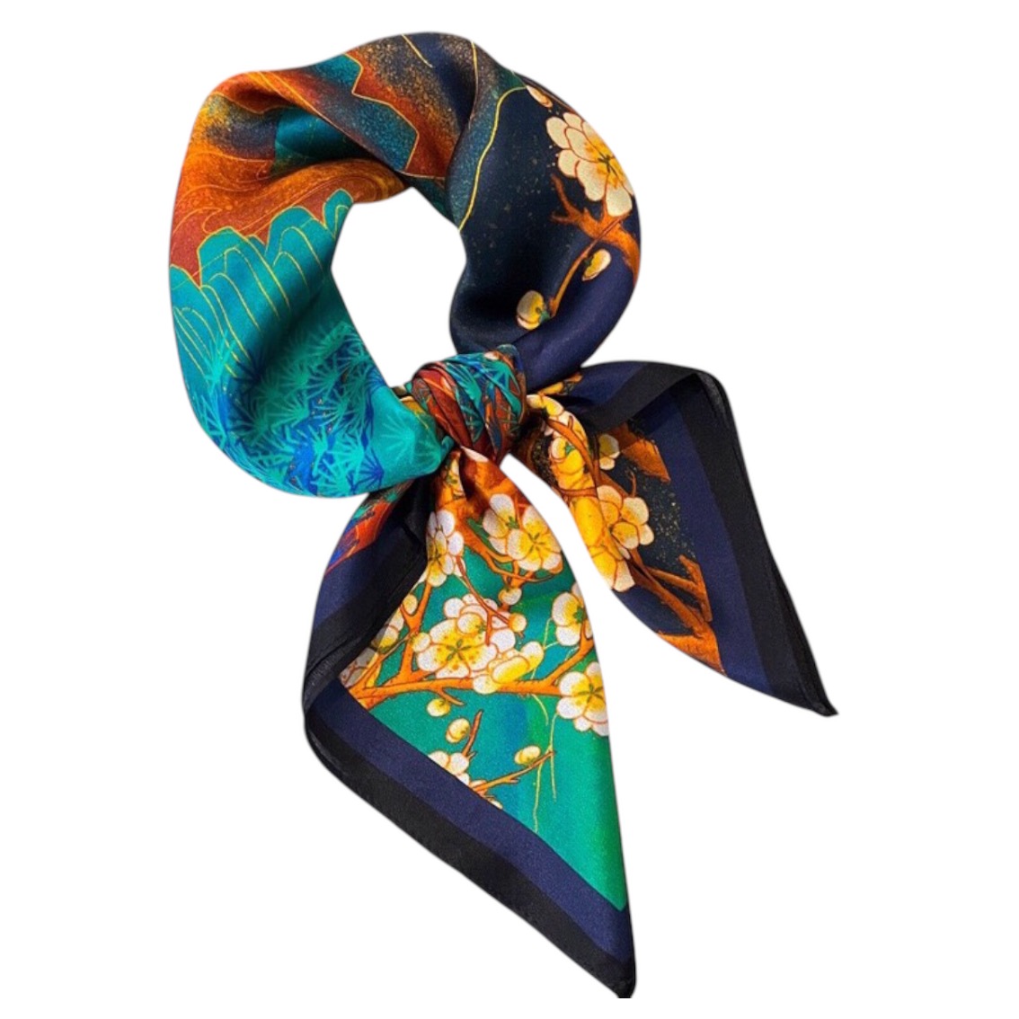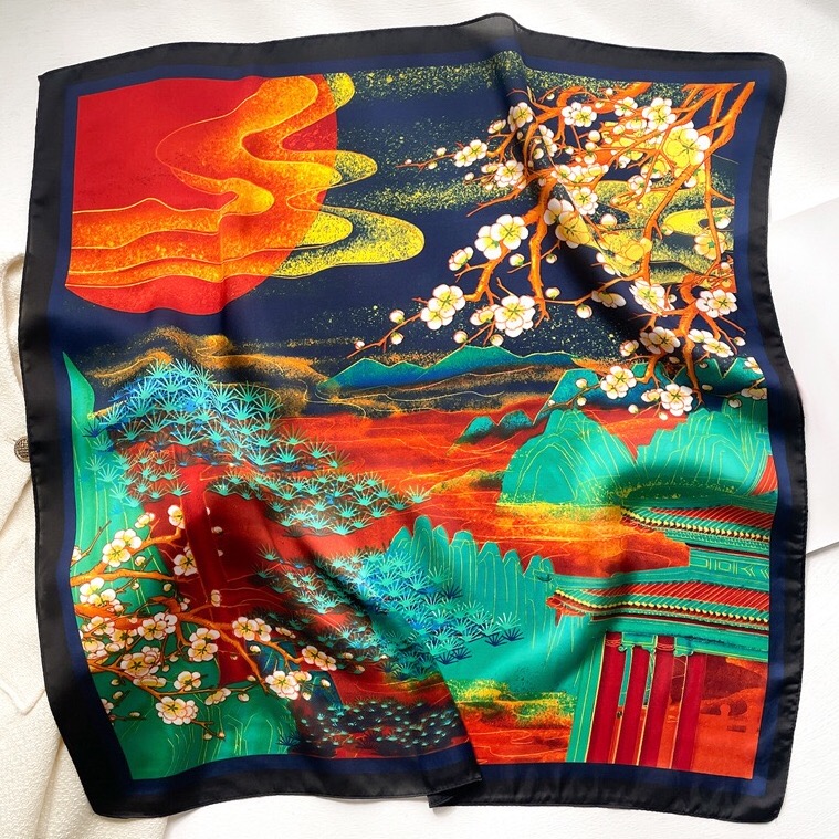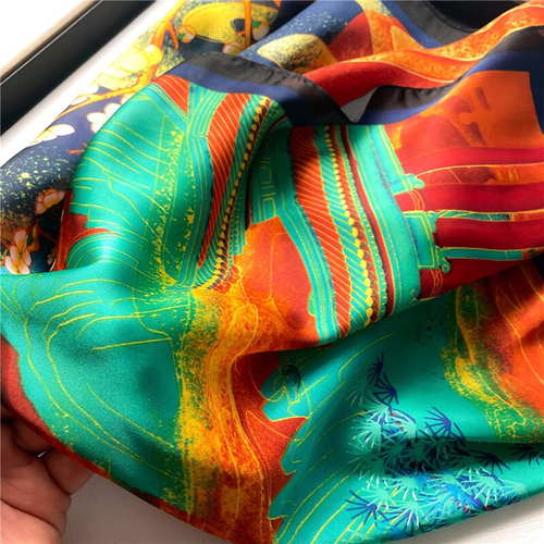 Esarfa din matase naturala cu design original,pictata asemenea unui tablou dintr-o galerie de arta.