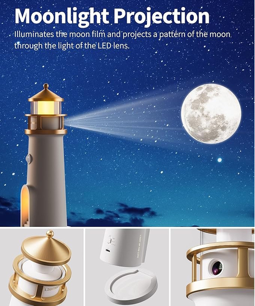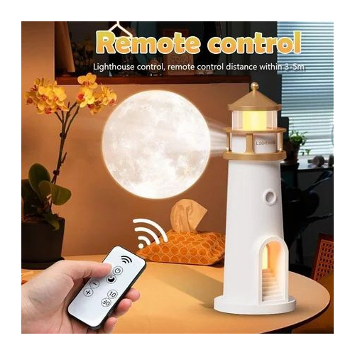 Lampă decorativă Magic Lighthouse – cu proiecție lunară 3D, Bluetooth și telecomandă