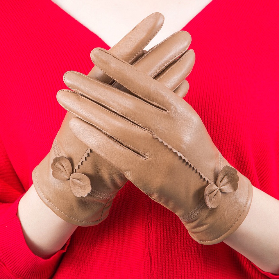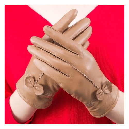 Manusi dama piele naturala premium,cu Fundita,imblanite,Bej