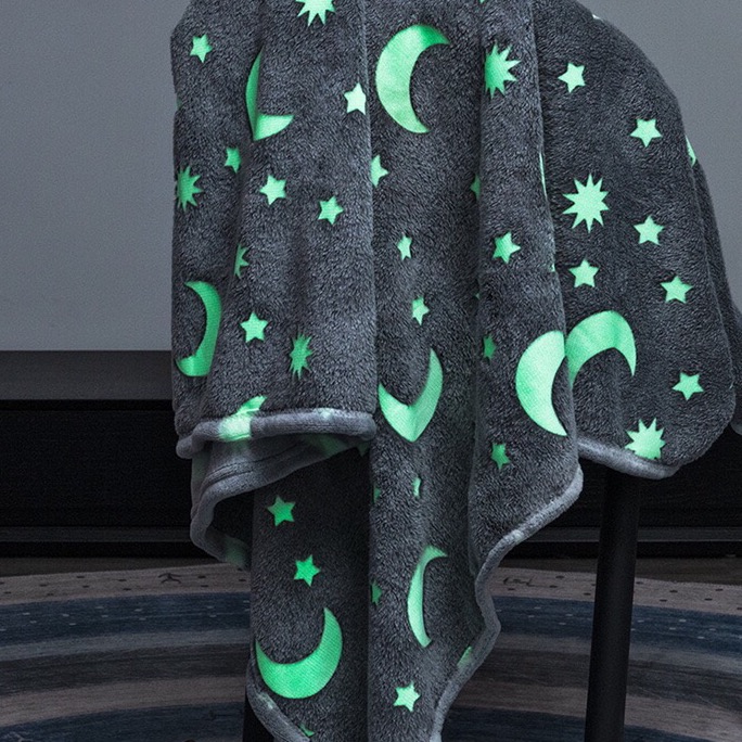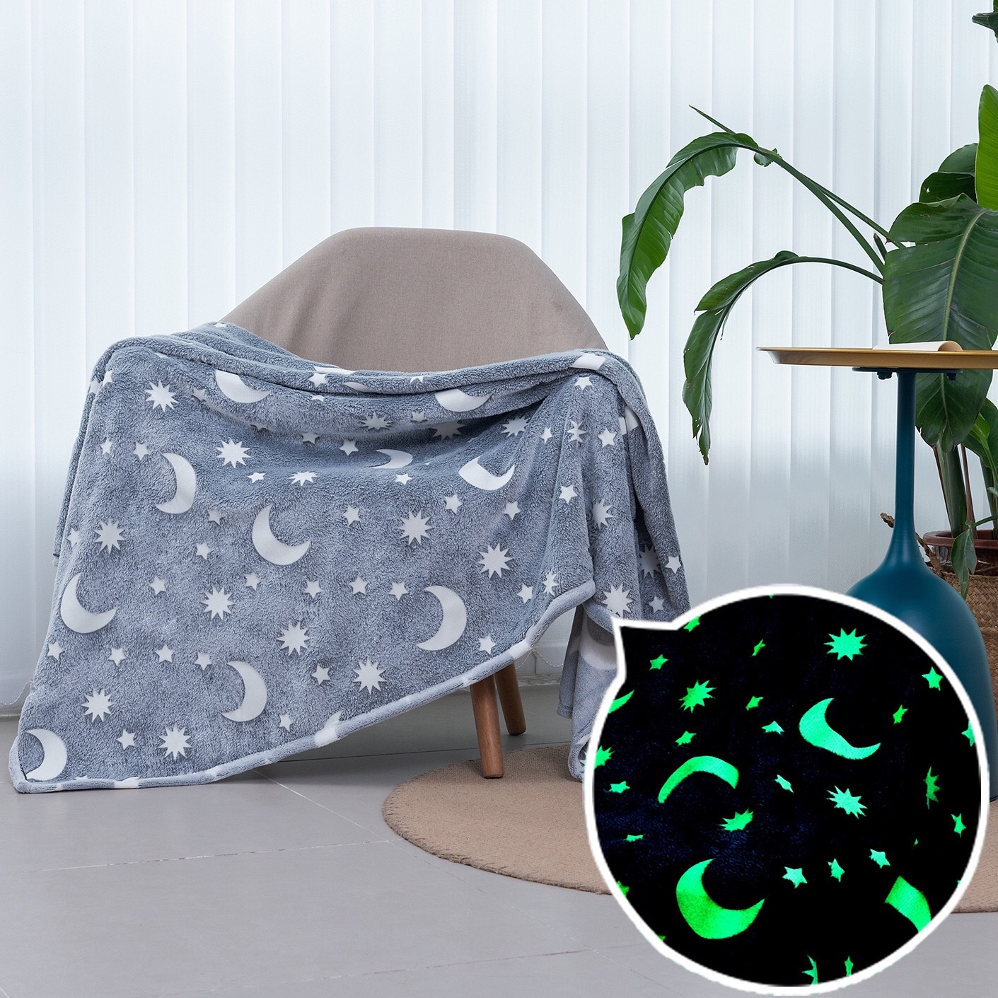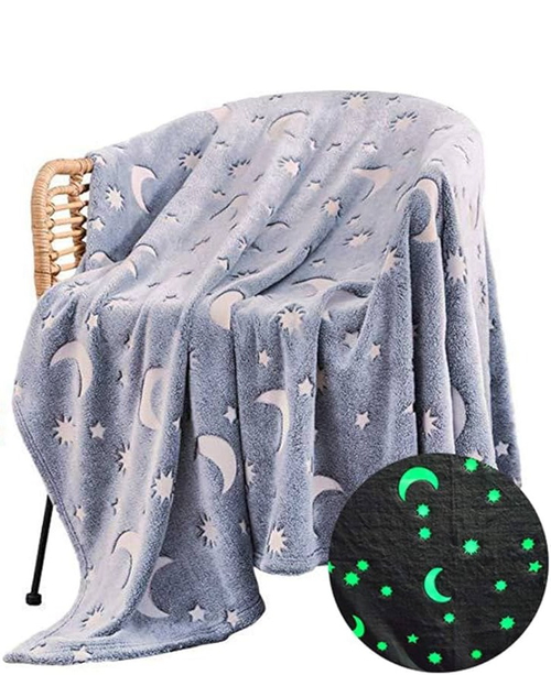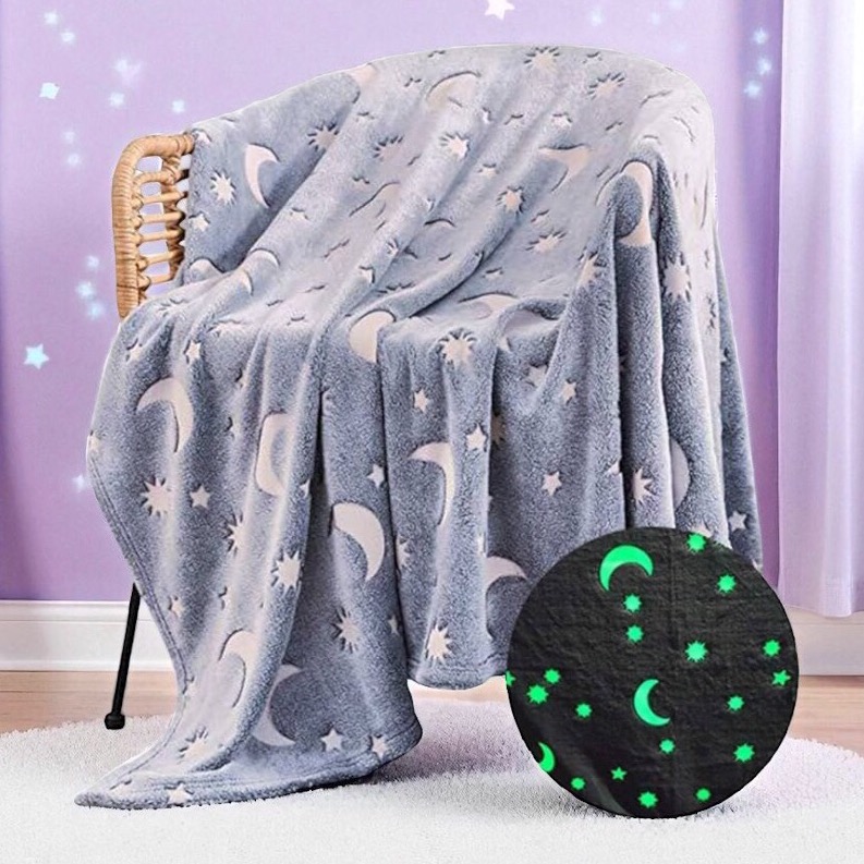 Pătură fosforescentă cu stele și lună – Confort și magie în fiecare noapte!