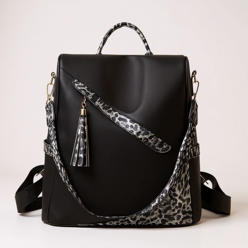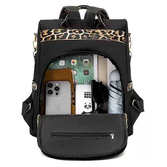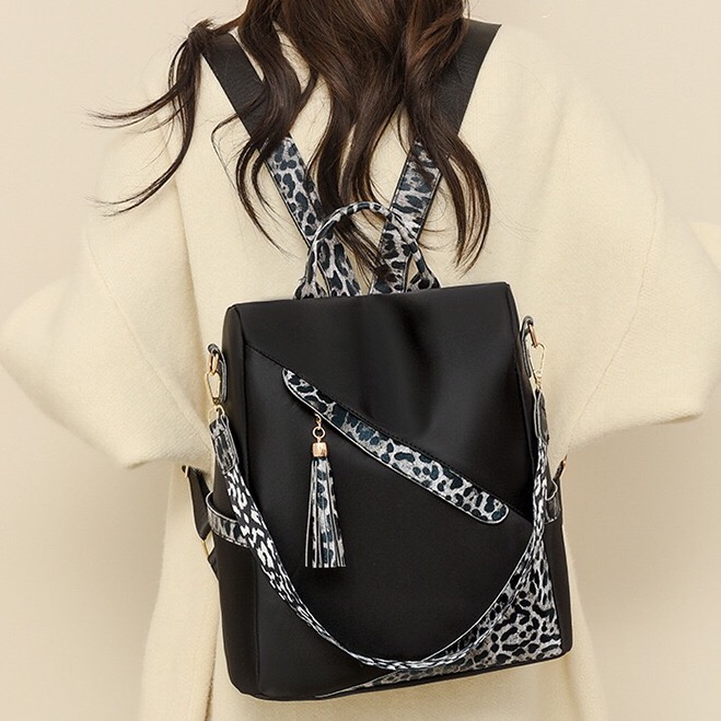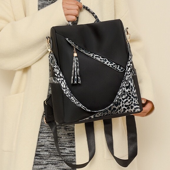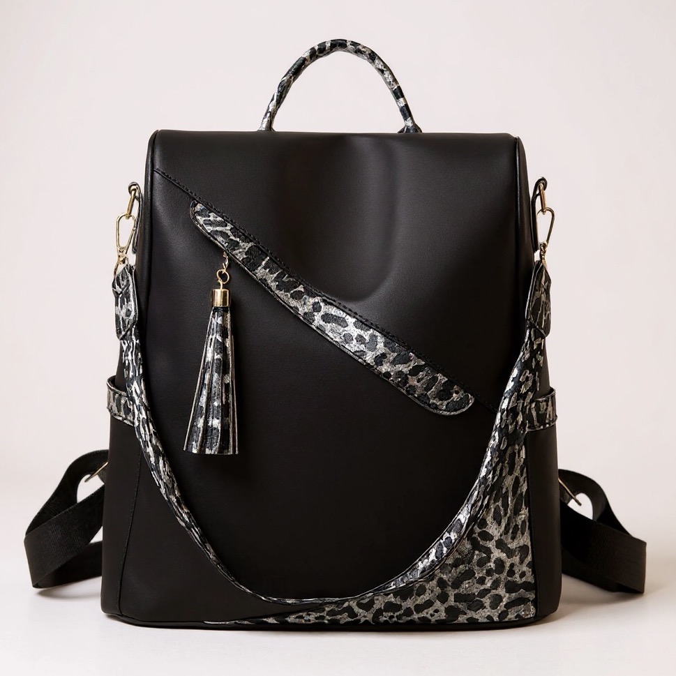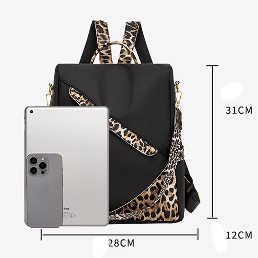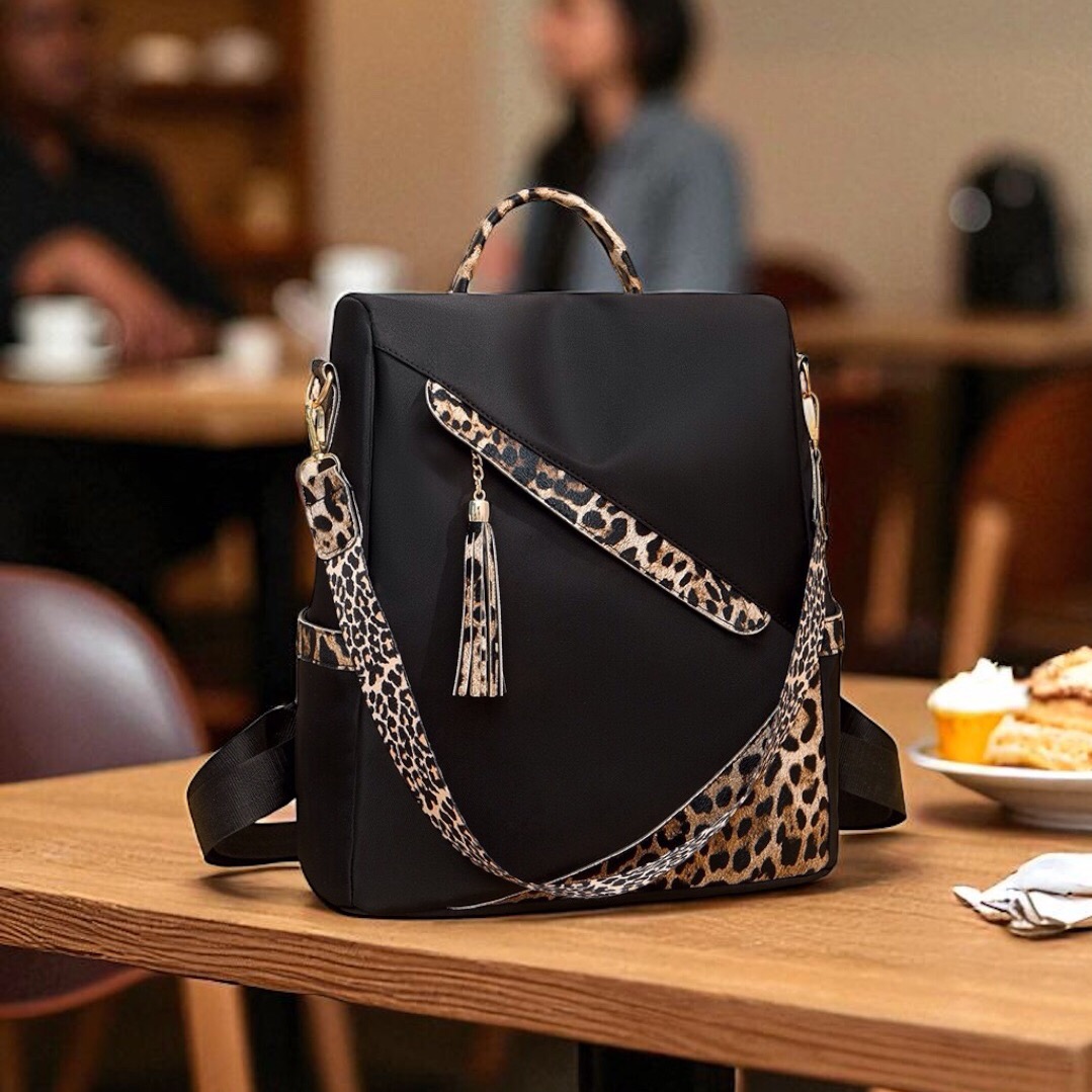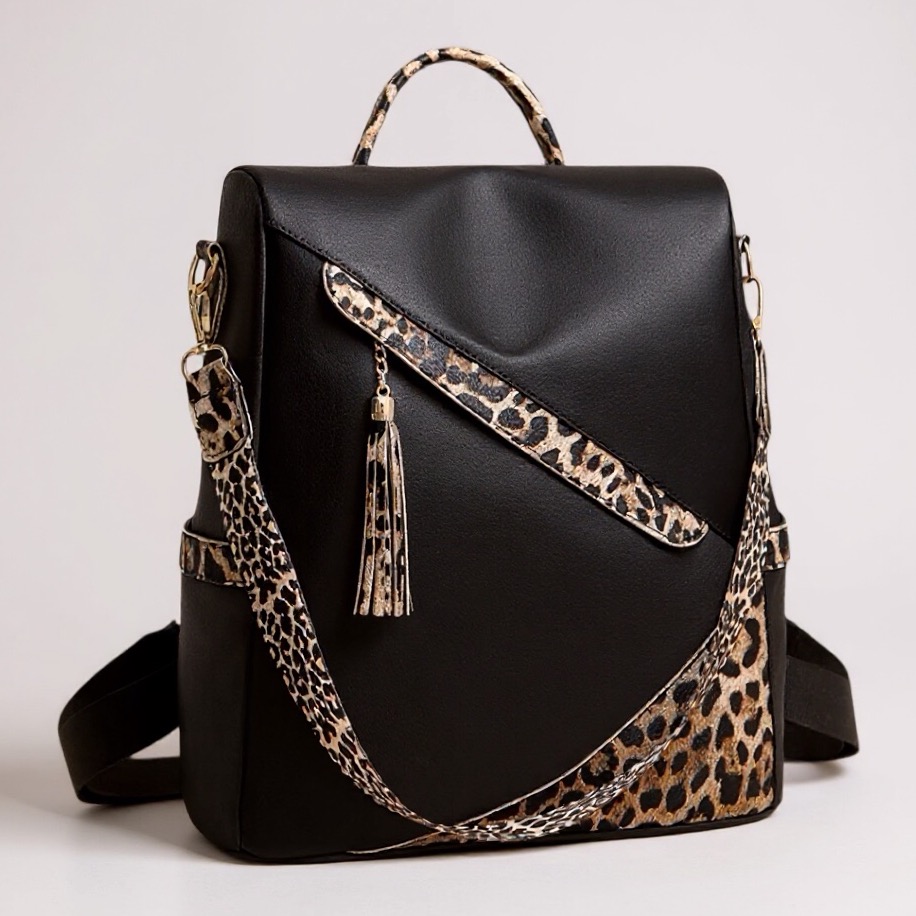 Geanta-rucsac dama impermeabila cu imprimeu leopard – 2 în 1, eleganta si practica.