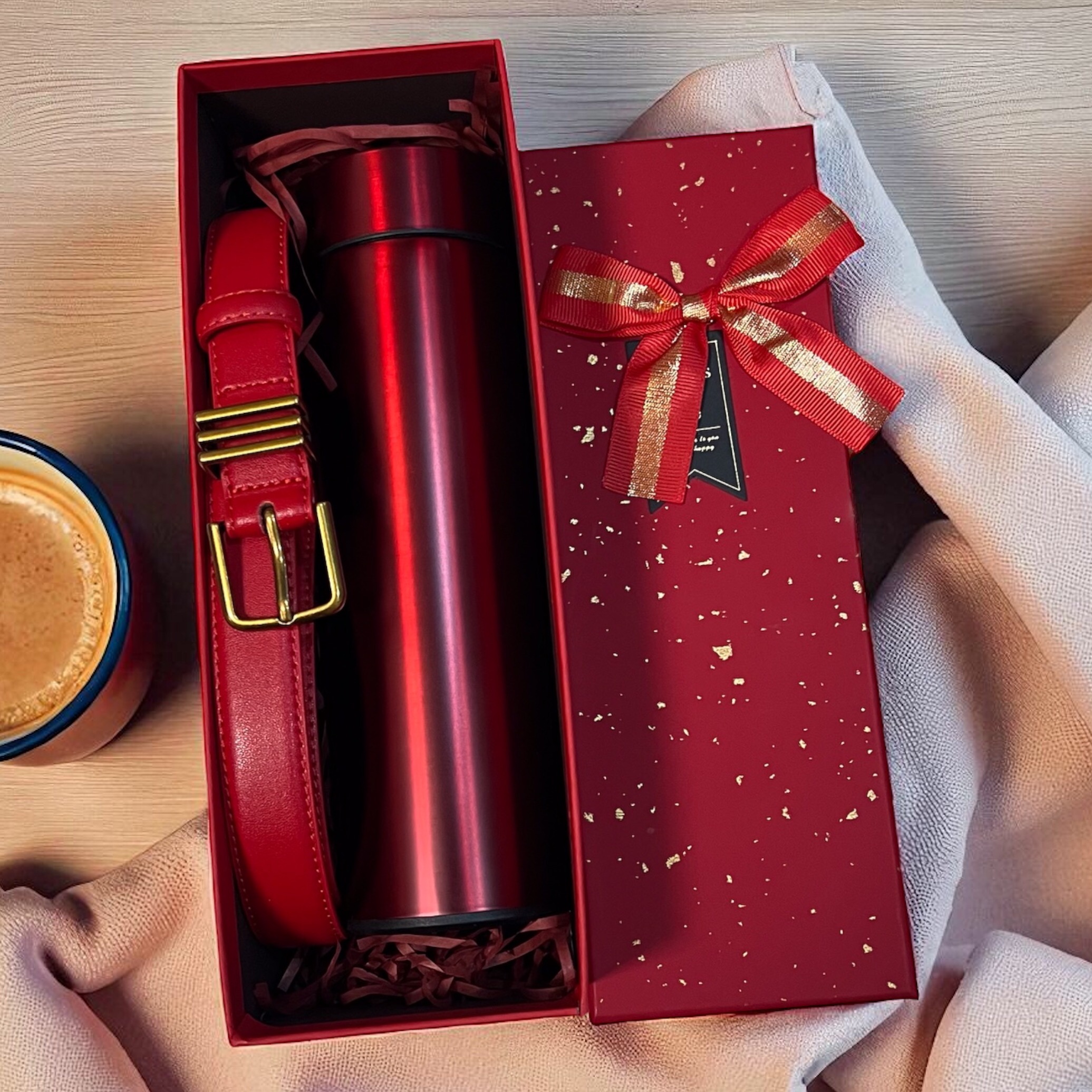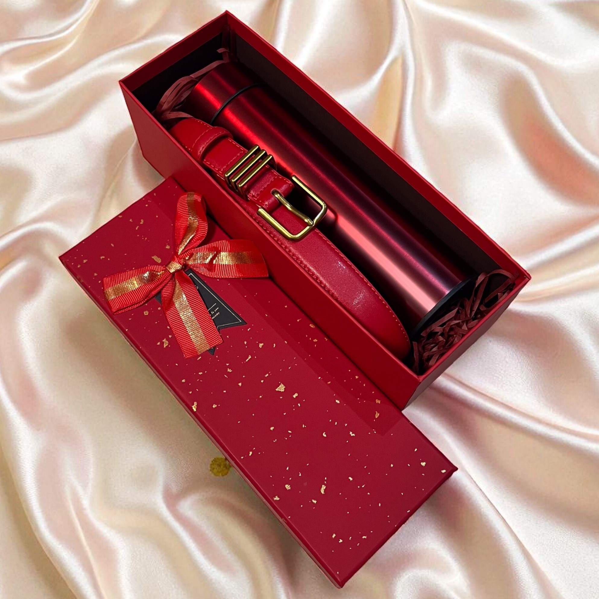 Descopera setul cadou pentru femei cu termos digital si cutea din piele naturala!