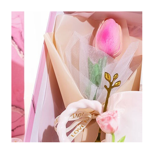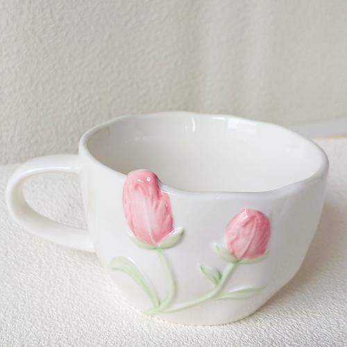 - ceasca pentru cafea sau ceai,decorata cu lalele in format 3D,din ceramica fina;