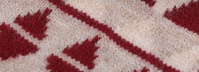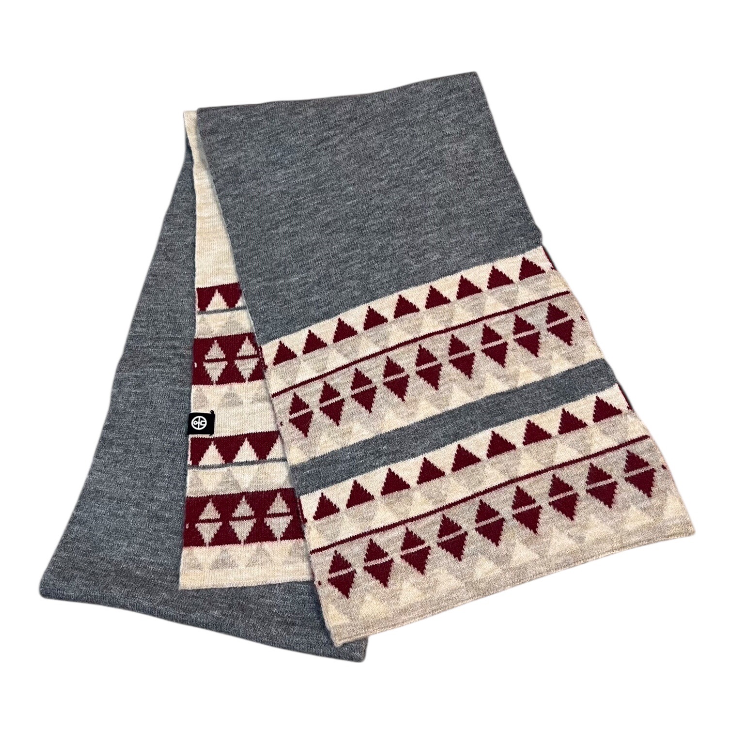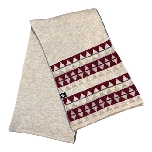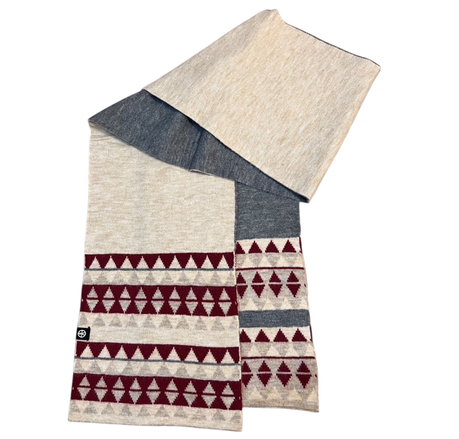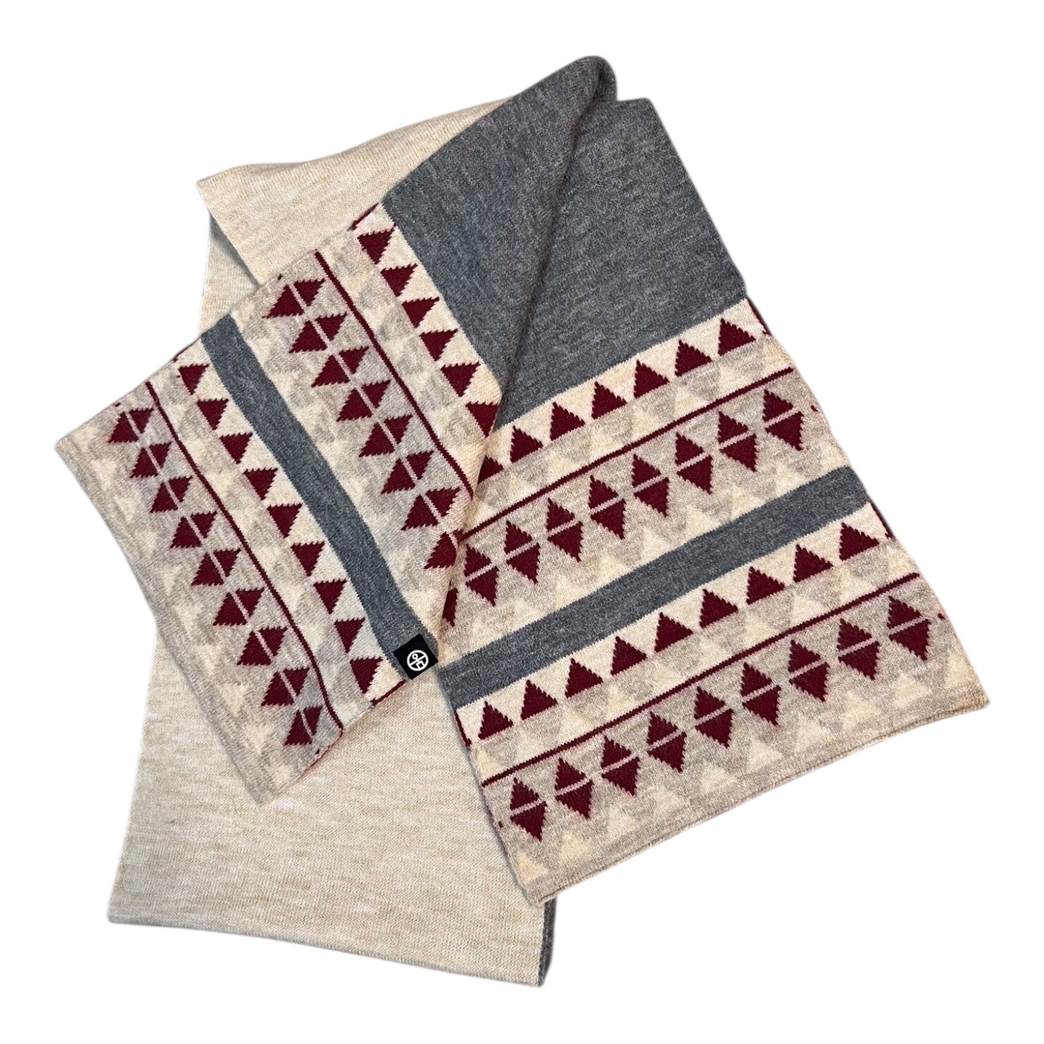 Designul geometric în tonuri de bej, gri și burgundy aduce un aer elegant și modern, perfect pentru sezonul rece.