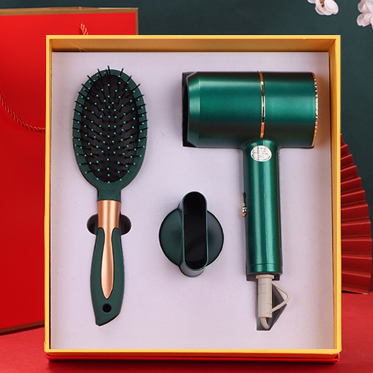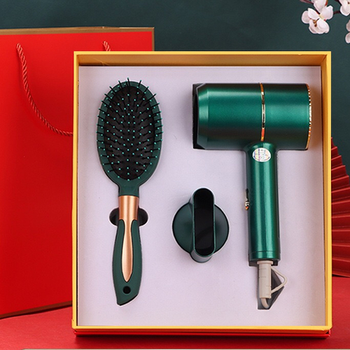 Set Cadou Premium cu Uscător de Păr cu Ioni & Perie de Păr cu Masaj – Ambalat Elegant în Cutie și Pungă Roșie