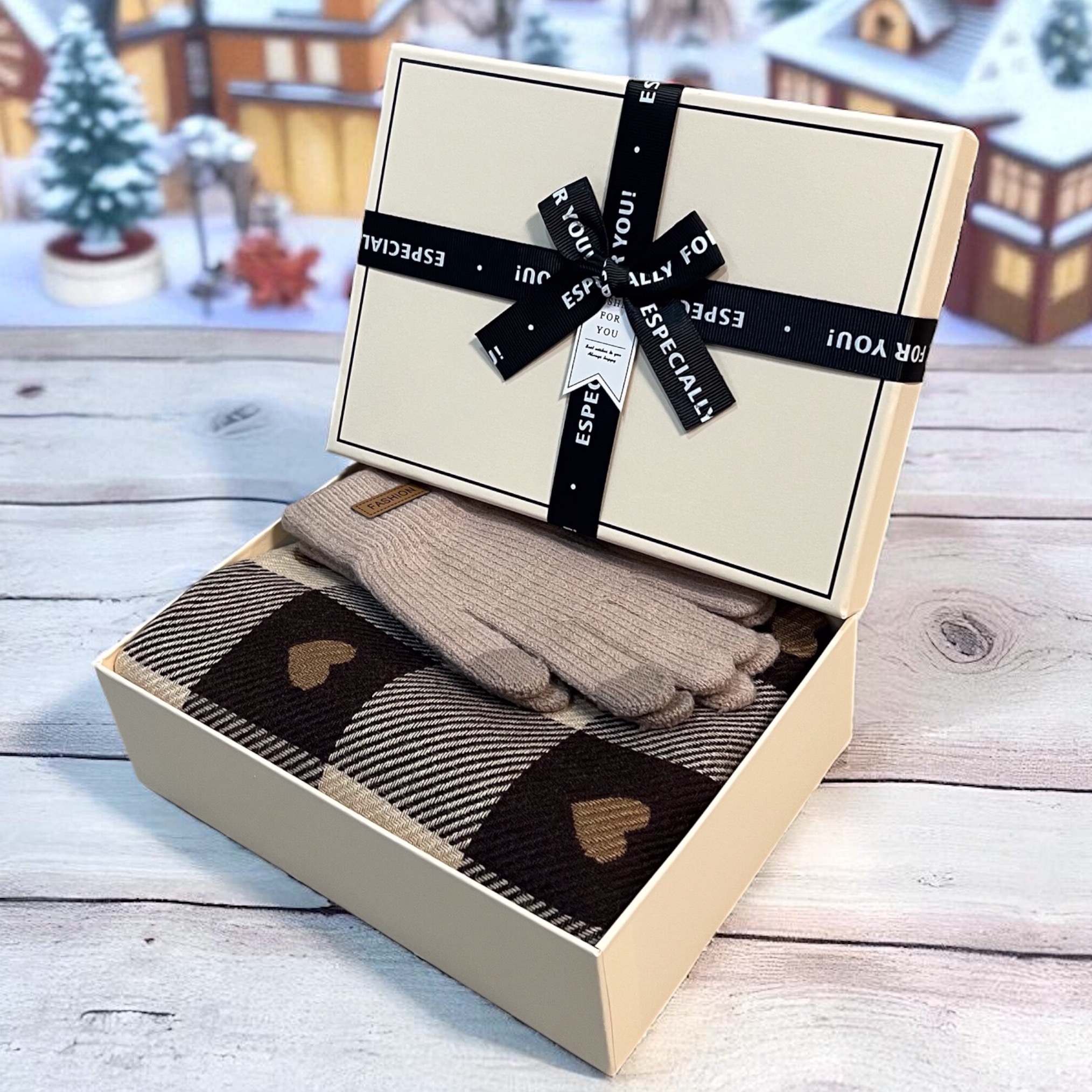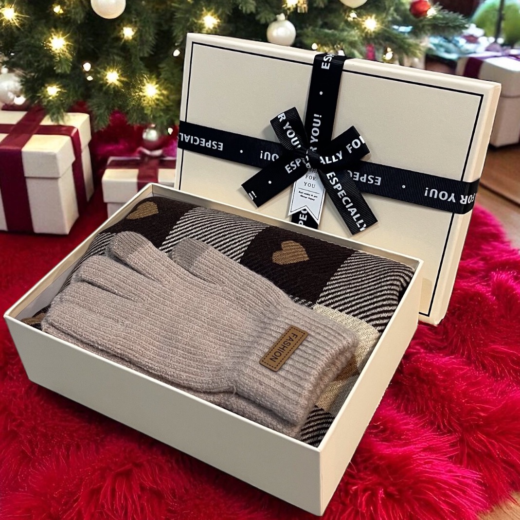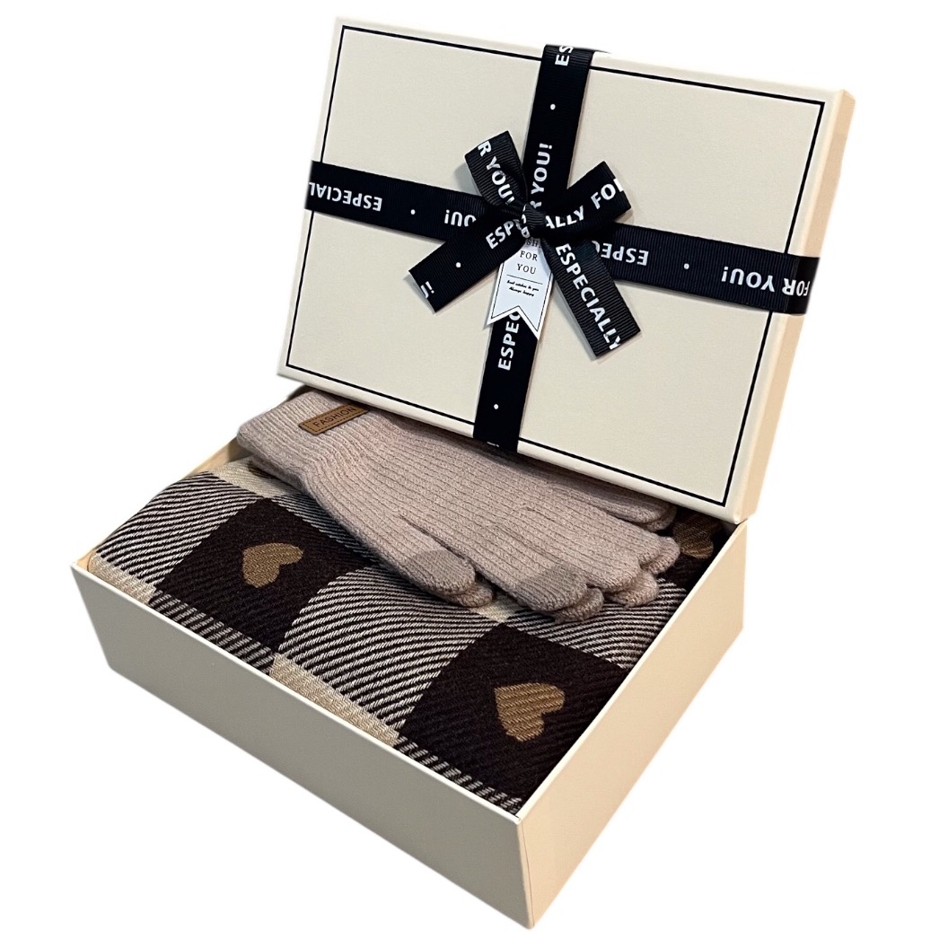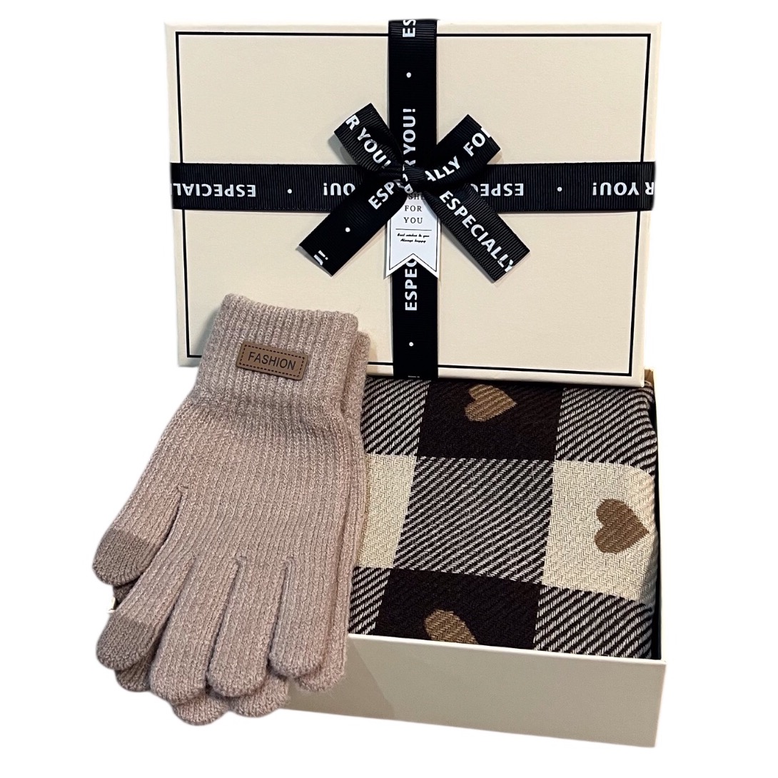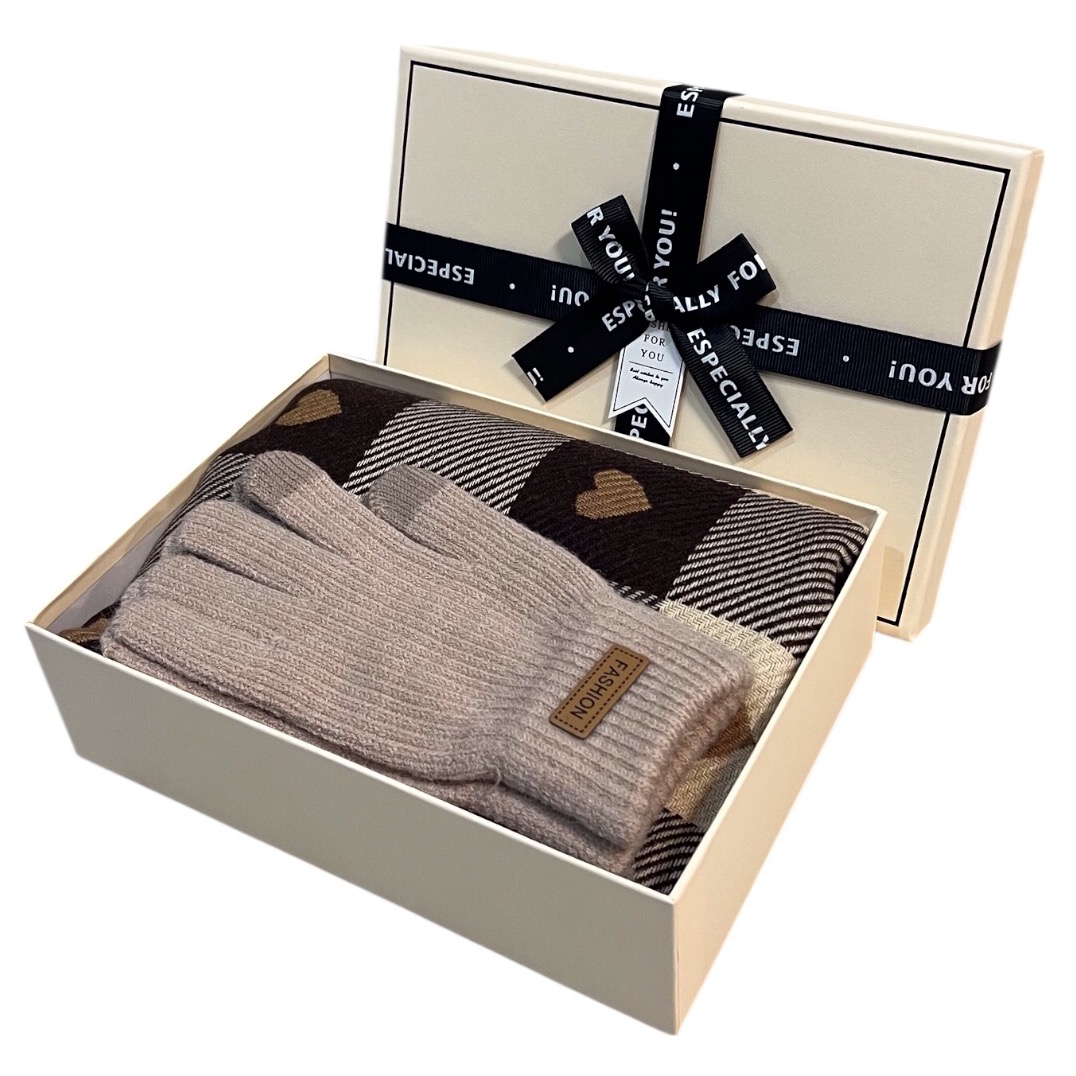 Set cadou elegant pentru femei – fular cu inimioare și mănuși călduroase, cu ambalaj premium