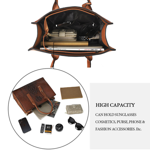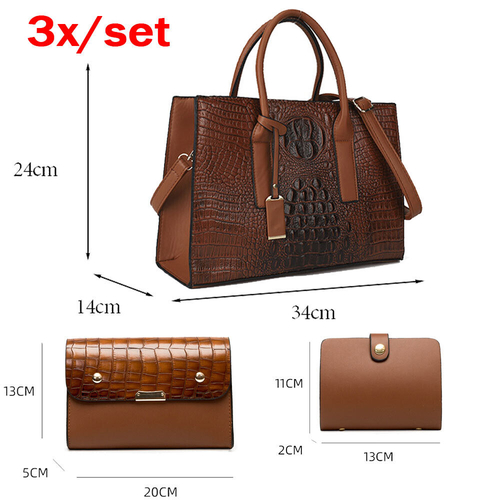 Set cadou pentru femei ce contine doua genti luxury din piele crocodil 3D si un portofel pentru carduri.