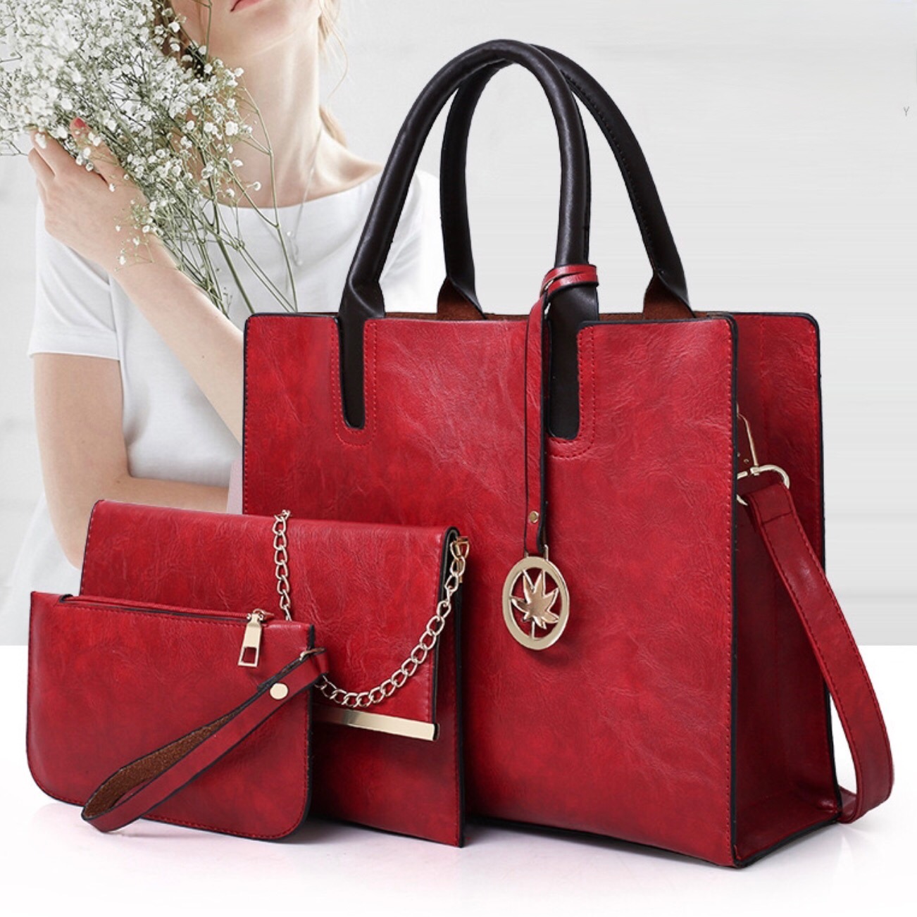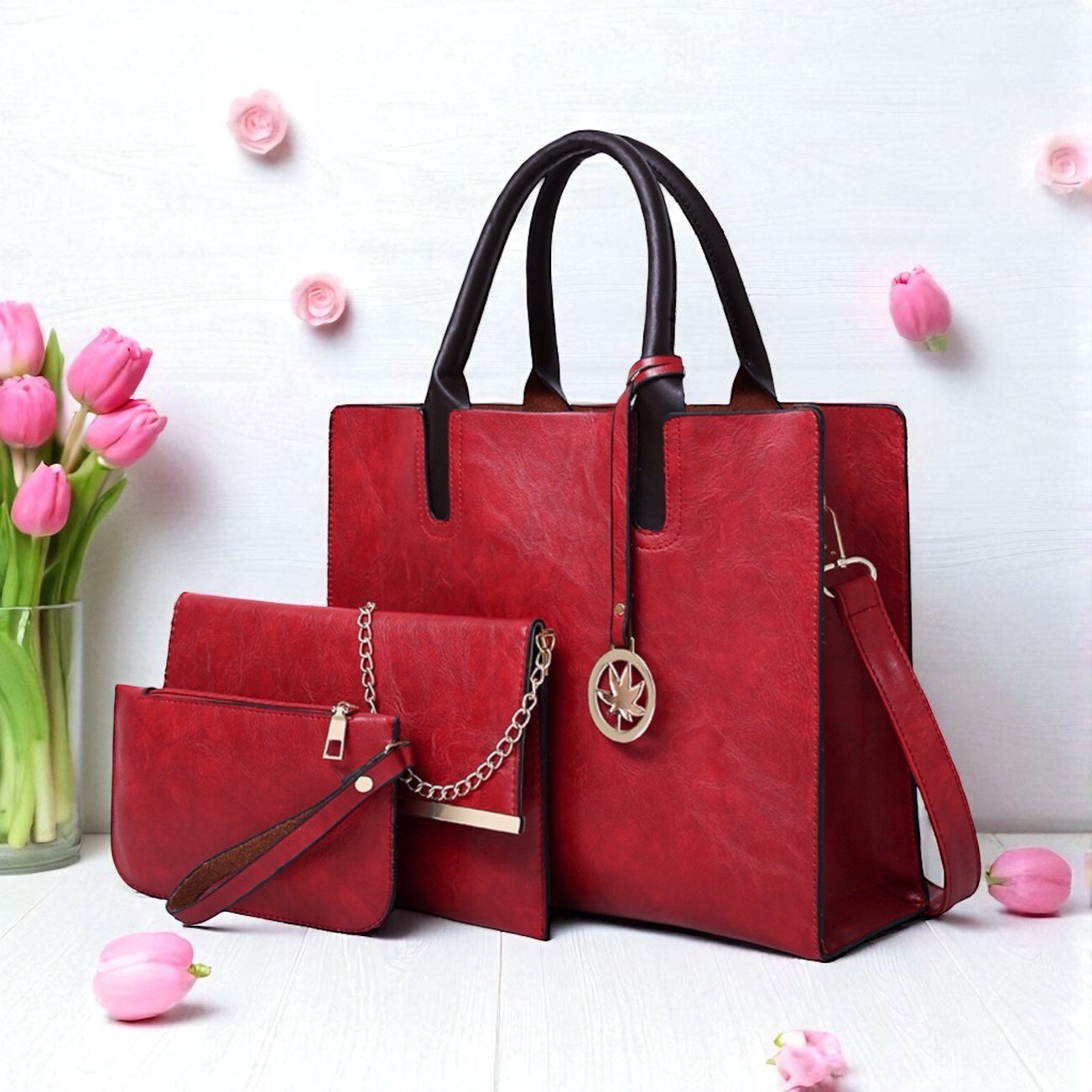 Format din trei piese – o geantă de umăr, o poșetă tip plic și un portcard practic – acest set este alegerea ideală pentru femeia modernă care apreciază eleganța și funcționalitatea.