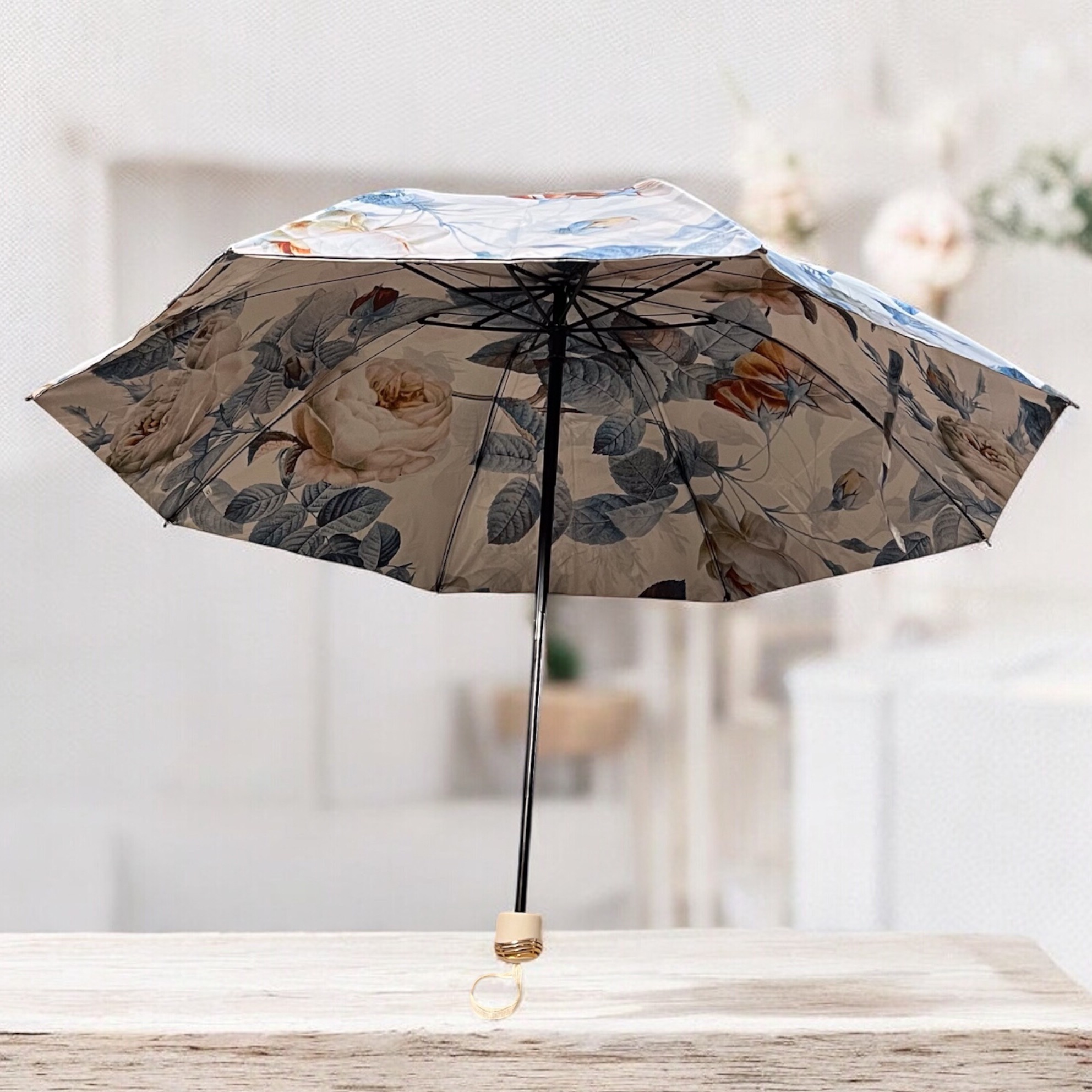 Umbrelă pliabilă Vintage Flower,cu săculeț pentru transport și depozitare,material în strat dublu