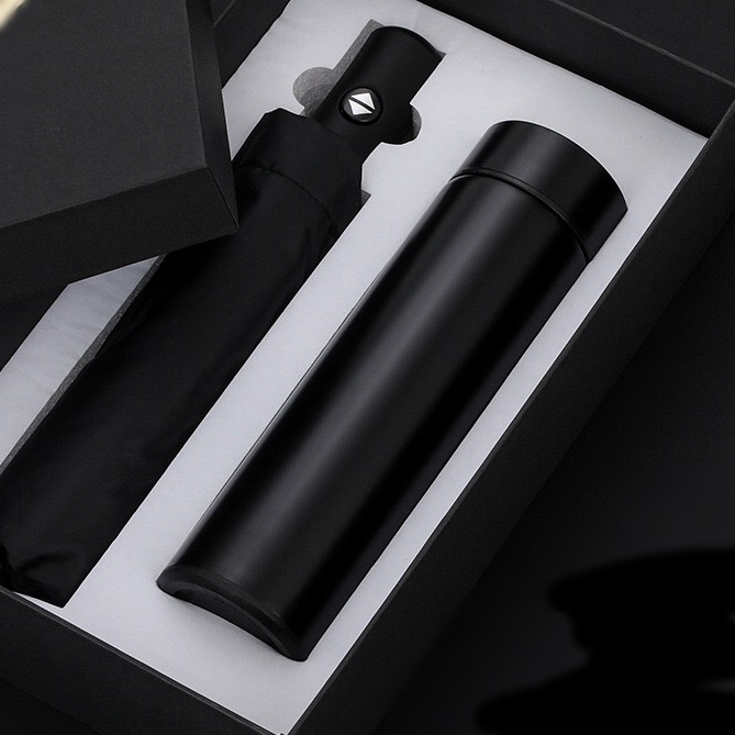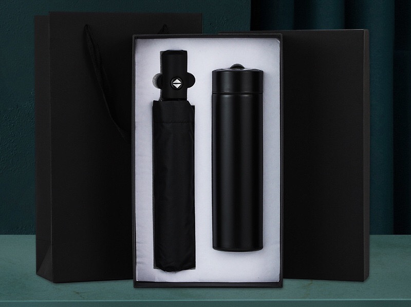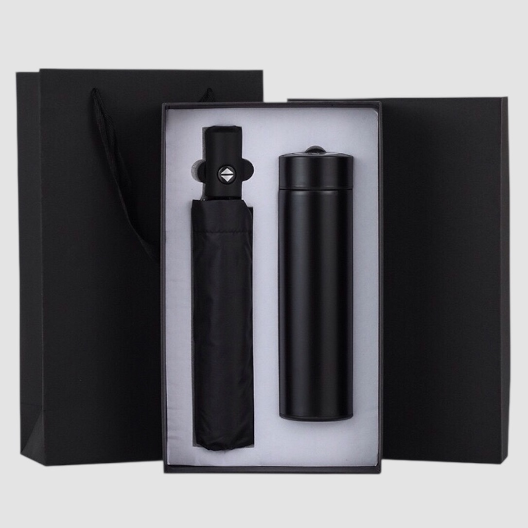 Set Cadou business cu Umbrelă și Termos Digital 500ml – Cutie Premium cu Pungă Inclusă