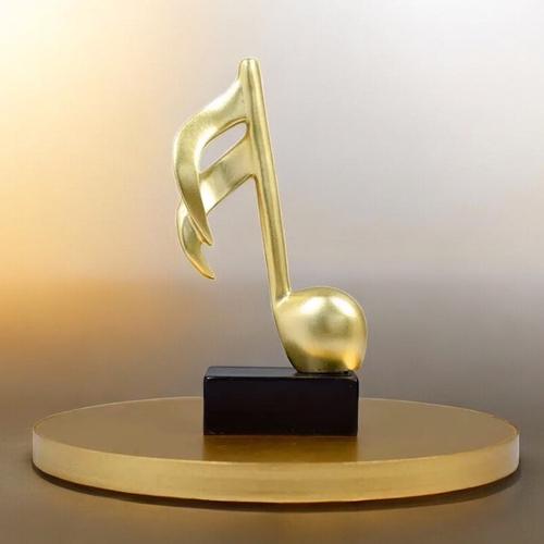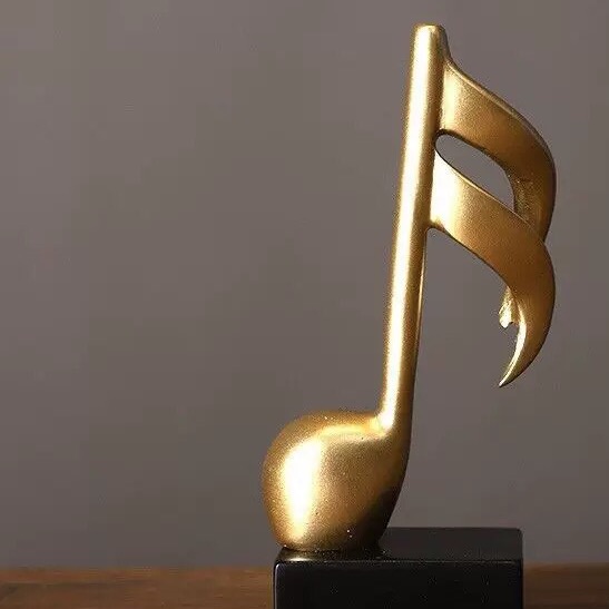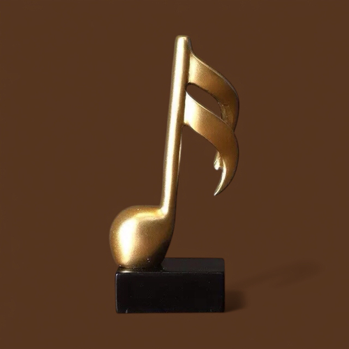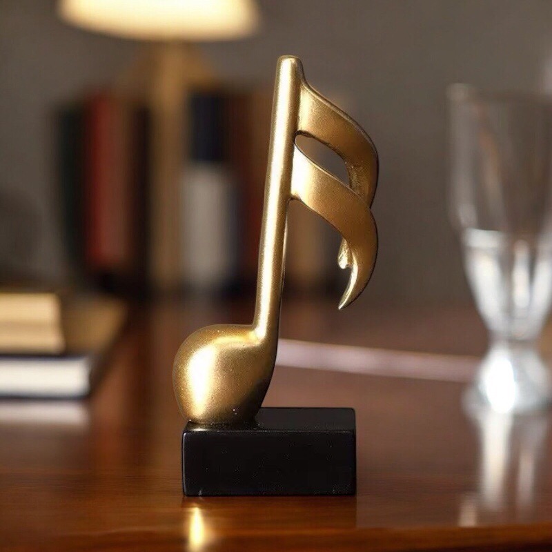 Adaugă un strop de armonie în orice spațiu cu această decorațiune muzicală aurie, realizată sub forma unei note muzicale stilizate. Piesa are un design modern, cu finisaj metalic auriu și este fixată pe un suport negru elegant, fiind ideală pentru birou, living sau studio creativ.