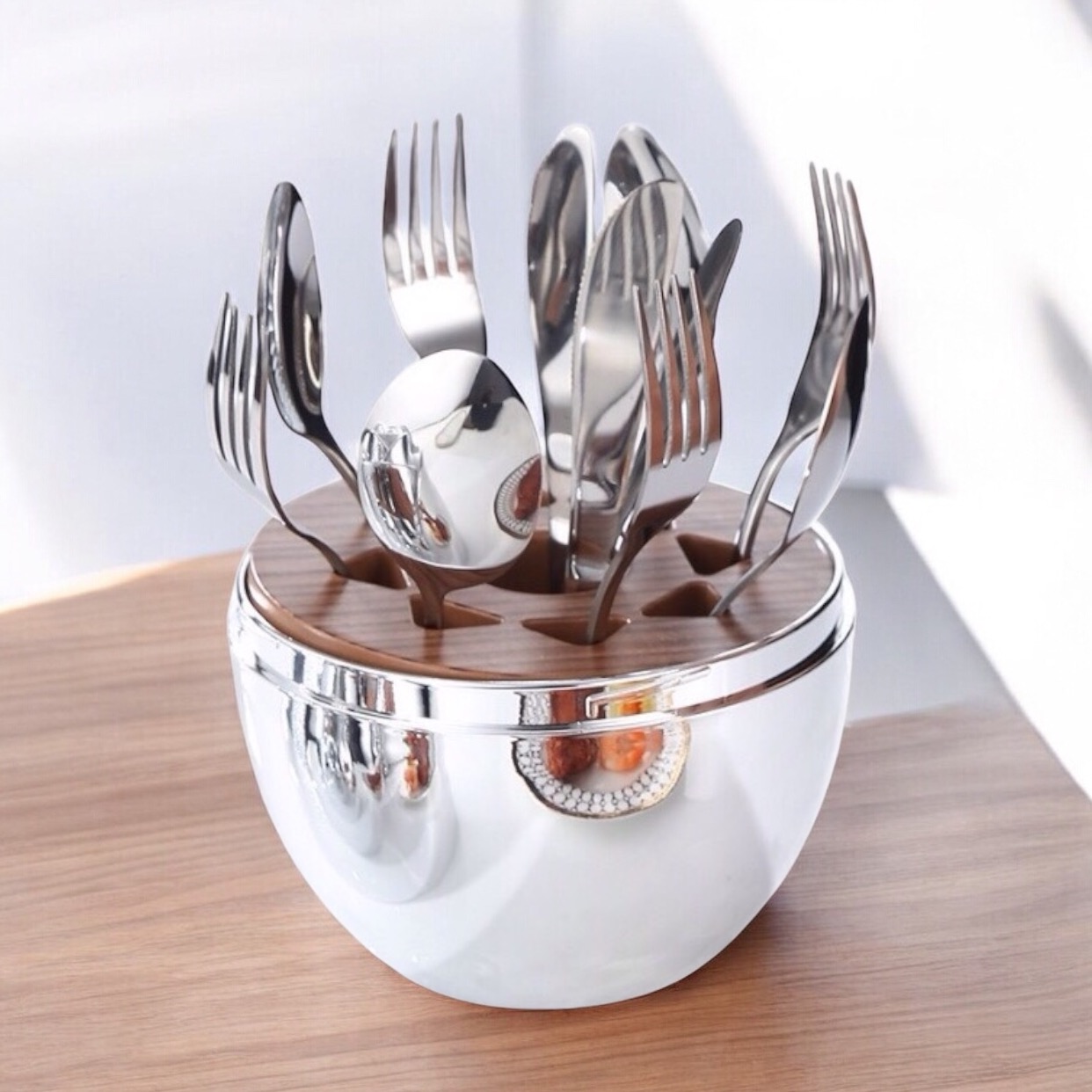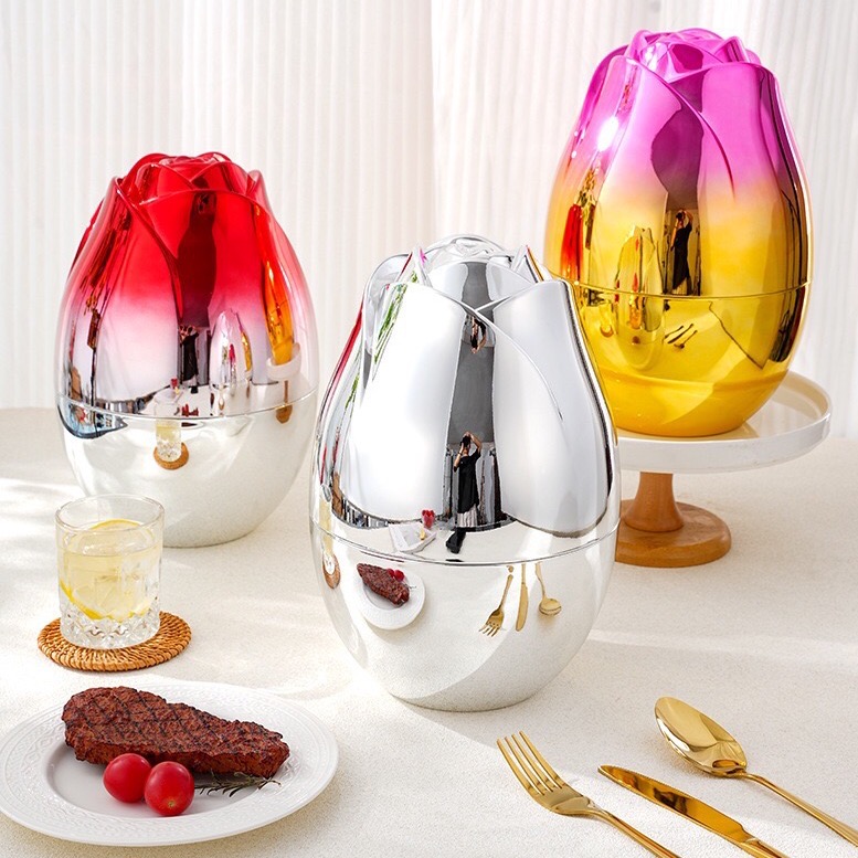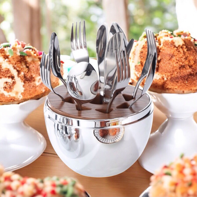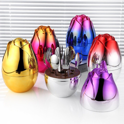 Suportul elegant în formă de trandafir transformă tacâmurile într-un element decorativ spectaculos și practic.