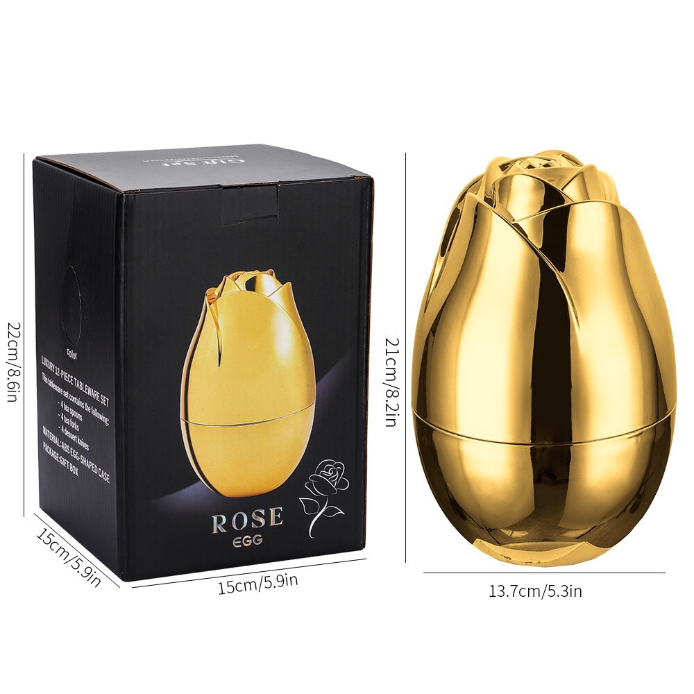 Set Tacâmuri Argintii cu Suport Decorativ Trandafir – 12 Piese Elegante pentru Cadou