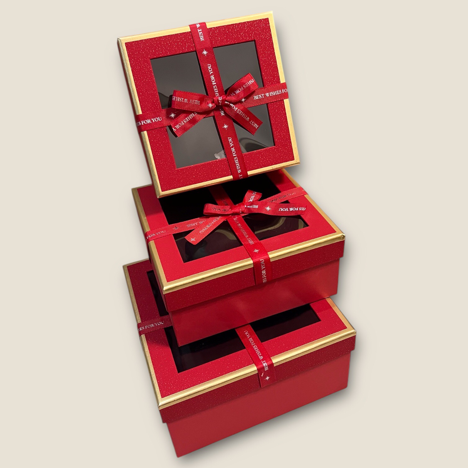 Oferă valoare darurilor tale și alege rafinamentul în ambalare cu acest set de 3 cutii cadou premium de culoare roșie!