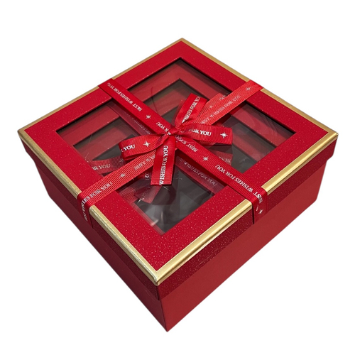 Set 3 cutii cadou Special Gifts,Rosii,din carton,capac transparent